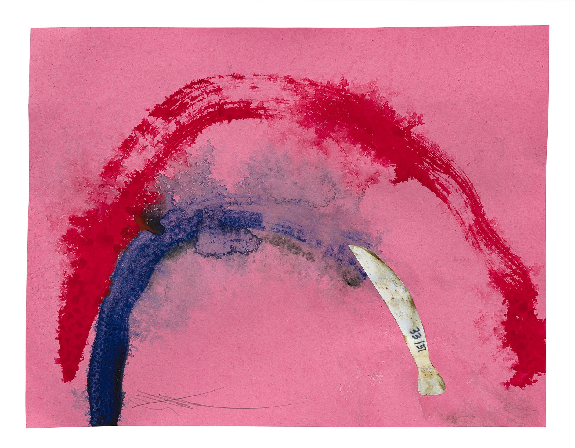 “Viviamo in uno stato di costante distruzione e divenire, girandoci intorno continuiamo a reiventare il passato come se fosse presente” spiega l’artista, che alcuni anni fa , durante una visita al Colosseo, rimase colpito dai papaveri fioriti che crescevano in mezzo alle rovine. Non è un caso che la chiave della mostra – la prima dell’artista nella sede romana di Gagosian – sia questa riflessione sulla circolarità del tempo, che prende avvio da una serie di preziosi collage di piccole dimensioni, intitolati DRFRTS (2013-) e simili ad una sorta di appunti dedicati alla città eterna in chiave concettuale. Un’intenzione annunciata fin dal titolo, un’abbreviazione della parola inglese drifter (senzatetto), che riunisce queste opere su carta che rappresentano arcobaleni che sovrastano frammenti di ossa umane ritagliate da riviste di archeologia, intesi come possibili risposte alla domanda “Che cos’è un arcobaleno se non rimane nulla di vivo a guardarlo?”.