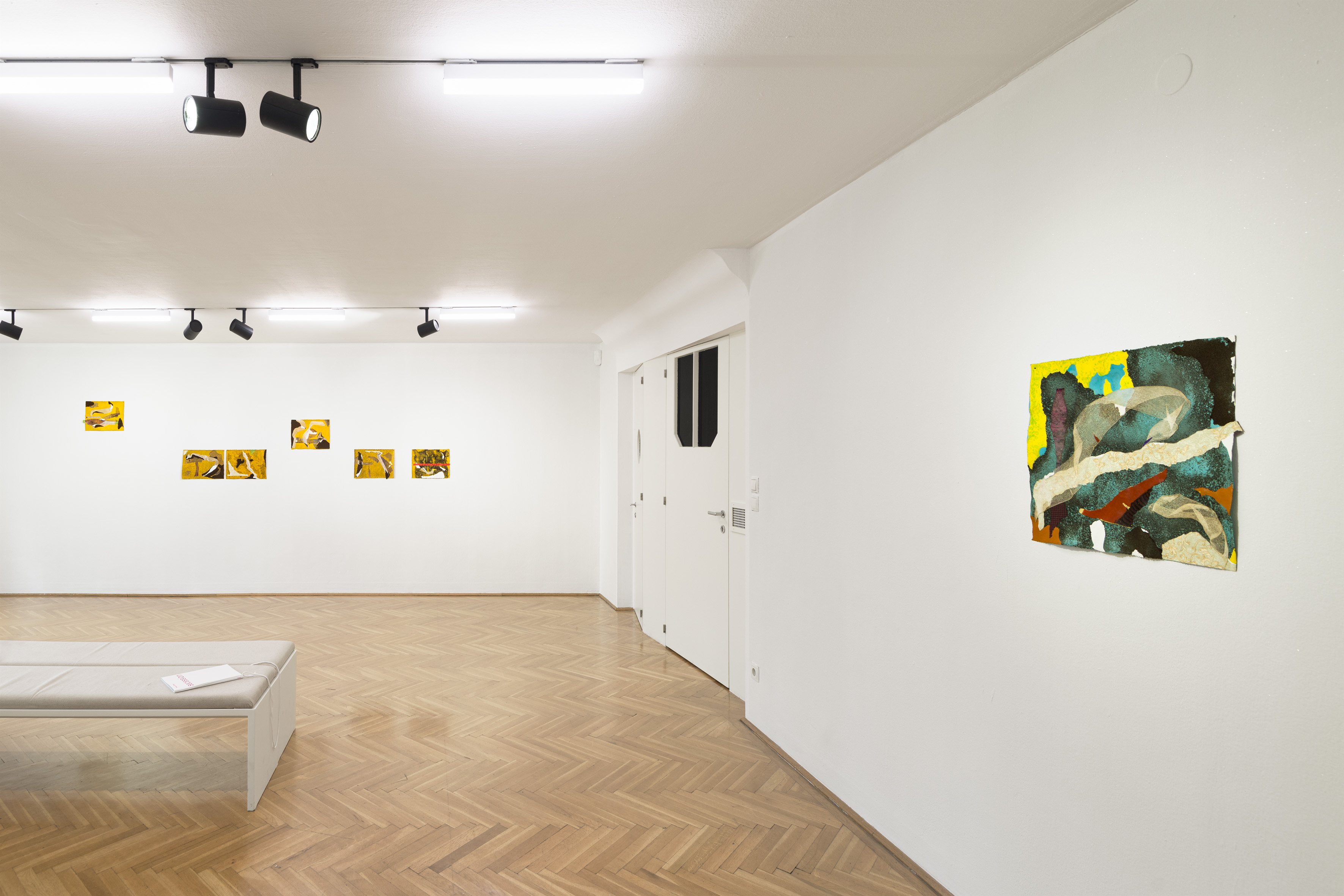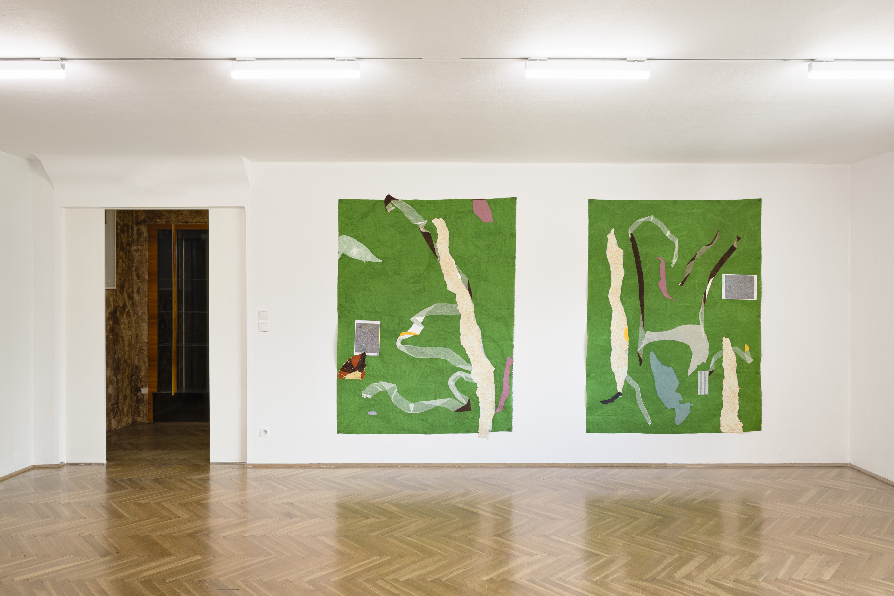 Nella mostra Weaving Stories presso la Secession di Vienna presenti opere (tutte untitled) su tela non intelata, realizzate con fondi di caffè, garze in cotone e gesso bolognese. Cosa rappresentano metaforicamente questi tre materiali, così inconsueti ma centrali nel tuo linguaggio visivo?