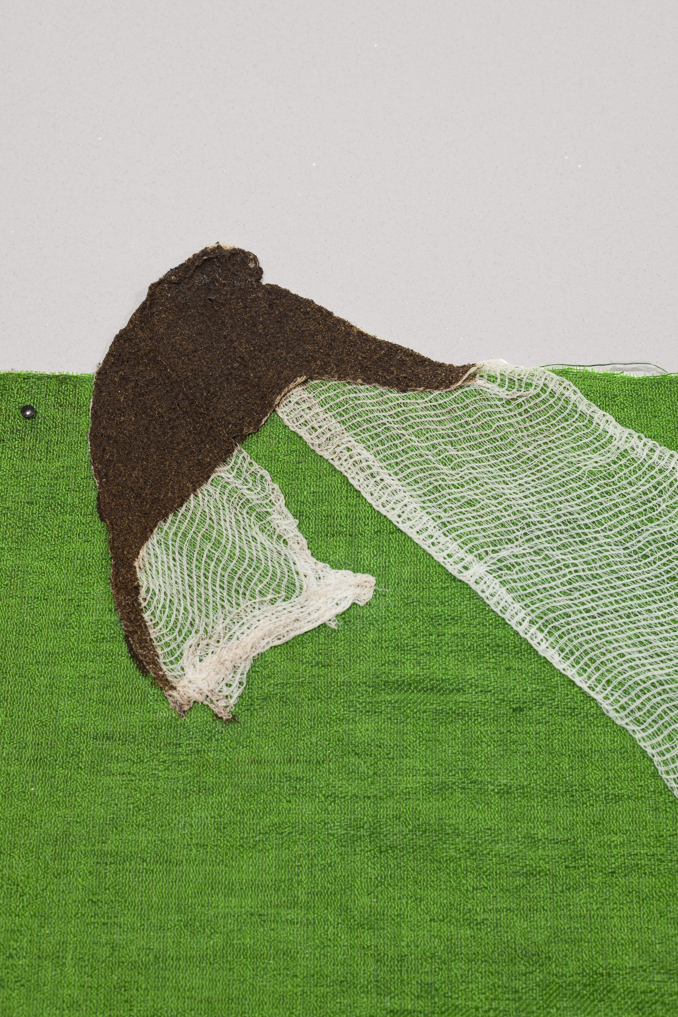Le garze in cotone sono arrivate in studio durante la pandemia. Recuperate da kit medici scaduti, sono materiali fragili, pensati per curare. Portano con sé la memoria della ferita, ma anche del gesto che prova a riparare. Ogni frammento è un ricordo cucito.