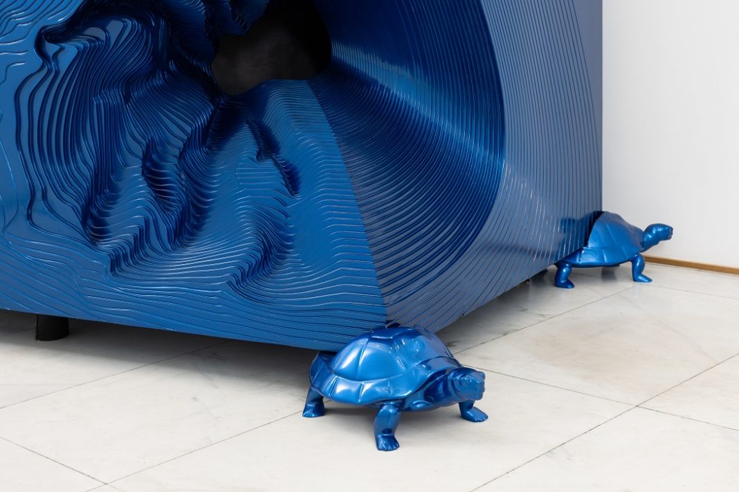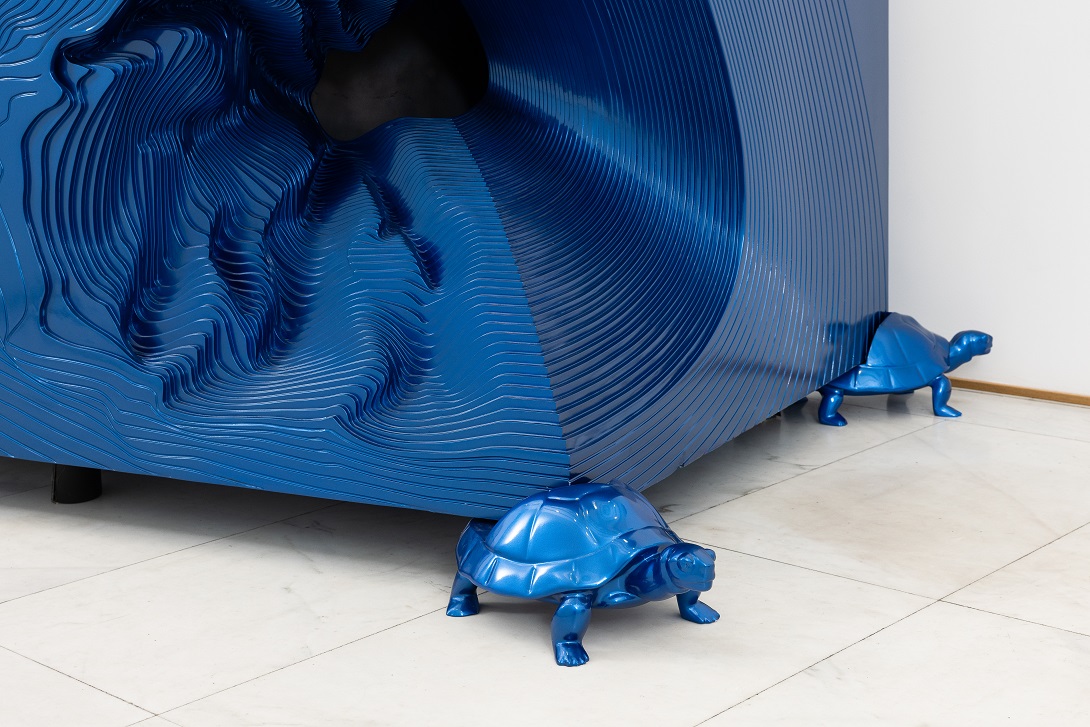Un occhio blu elettrico di dimensioni monumentali scruta i visitatori negli spazi esterni della Triennale di Milano. È Gate of eye (2024), di Seçkin Pirim, che ha appena inaugurato la sua prima personale italiana a cura di Tommaso Tovaglieri. La mostra nasce dalla collaborazione con l’Ufficio Arte negli Spazi Pubblici del Comune di Milano e rende visibili sette opere che parlano del confine sottile tra arte e design proprio dell’Optical Art, a cui le sculture sembrano riferirsi. La realizzazione è frutto di tecnologie digitali e, in parte, dovuta alle stesse mani di Pirim. Questa scelta porta ad una connessione tra due mondi apparentemente lontani. Il primo è quello legato alla concezione del creatore che dà vita all’opera tirandola fuori dalla materia. Nel secondo l’artista assiste alla concretizzazione di un’idea attraverso strumenti esterni, pur restando il suo ideatore.
