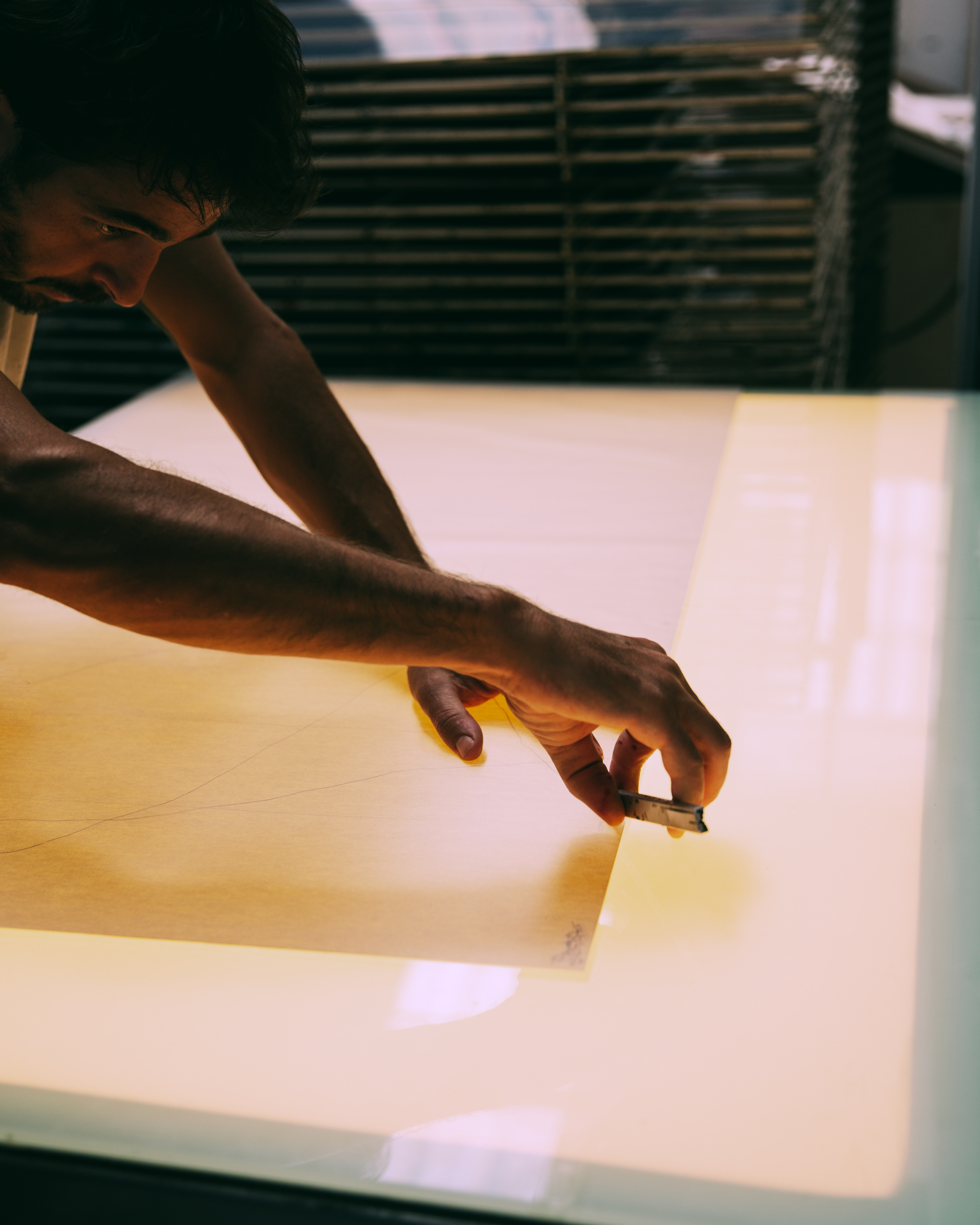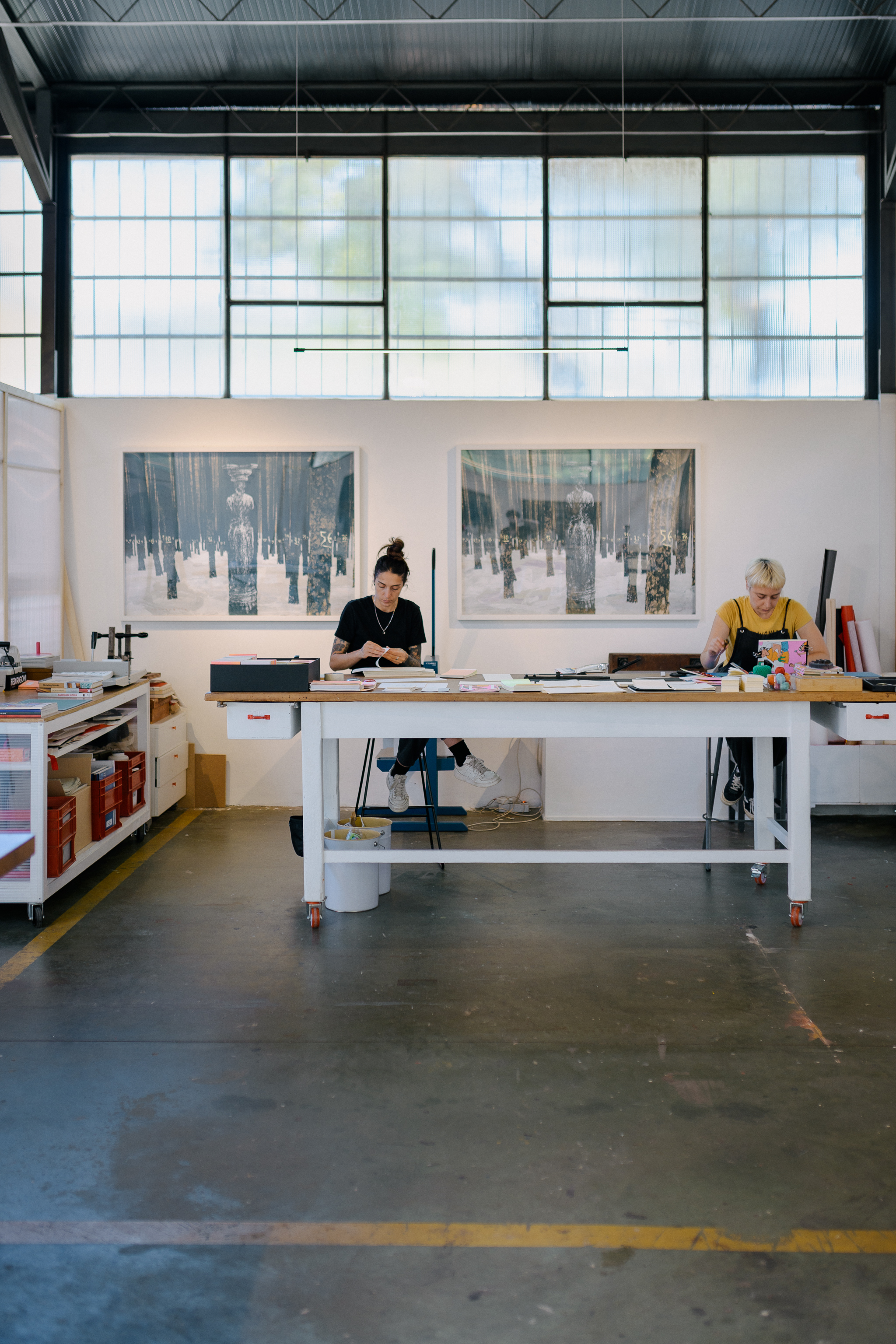 Nel nostro laboratorio ospitiamo infatti in residenza artisti italiani e internazionali che qui hanno la possibilità di entrare in contatto con le realtà artigianali che sono la spina dorsale di tutte le nostre produzioni: lo studio di serigrafia 56Fili, lo studio creativo di legatoria artigianale She.Lab e lo studio di design Base/34 lavorano fianco a fianco con gli artisti mescolando tematiche, tecniche, abilità e visioni artistiche.