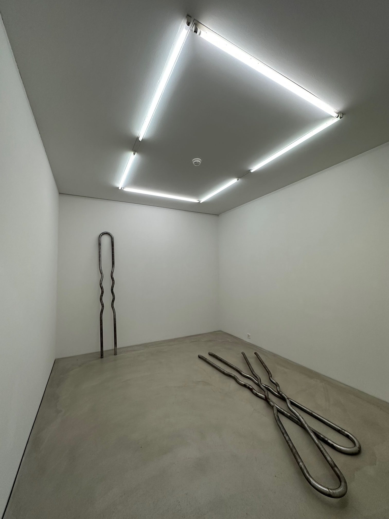 Subito dopo, nella sala attigua, un tappetino da yoga nero, verosimilmente in pelle, con inciso il logo della celebre casa di moda Gucci. Anche qui l’artista propone al fruitore l’ossimorica situazione di un oggetto sul quale porsi per riflettere, secondo antiche discipline orientali, per elevare lo spirito che non riesce comunque a superare il greve confine dell’ostentazione.