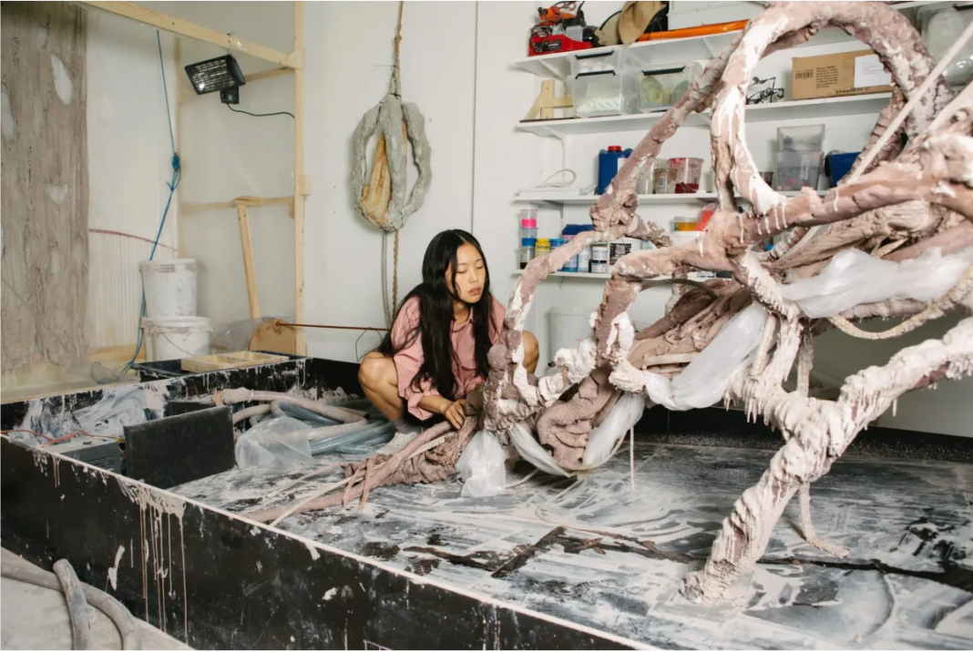 Quest’anno, il comitato di selezione ha scelto Lee, per le sue sculture tentacolari, che utilizzano elementi cinetici per evocare la tensione precaria tra flessibilità e rigidità. Oggetti come asciugamani e catene, materiali come argilla, silicone e strutture in acciaio si ibridano per formare opere dall’aspetto organico e primordiale ma anche meccanizzato.