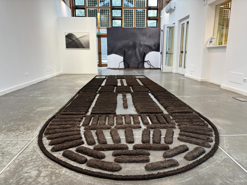 Nella sala di apertura del PAV è installata l’opera Chorus of Soil del 2019, una riproduzione sul suolo della pianta della nave negriera Brooks, realizzata con terra e semi. Le sagome degli schiavi, simbolo di oppressione, diventano germinazioni vegetali, trasformando la nave in un giardino di memoria e rinascita. Opera già apprezzata nella sua versione monumentale durante la Biennale di Liverpool del 2023, è concepita come uno spazio di commemorazione e di nuova vita: «Ho piantato semi di melone a causa del loro legame con le piantagioni gestite dalla mafia nel sud Iialia, dove migliaia di migranti vengono sistematicamente sfruttati e vivono sotto la minaccia dei ‘caporali’».