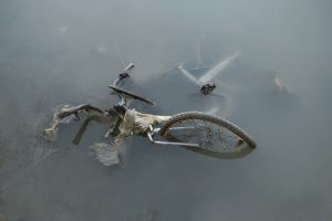 Iginio De Luca cattura le materialità corporee del sommerso in un lirismo fotografico dal sapore pittorico, dai toni foschi, ma penetranti, che restituiscono l’essenzialità eloquente del corso d’acqua, frammista alle contaminazioni mondane.