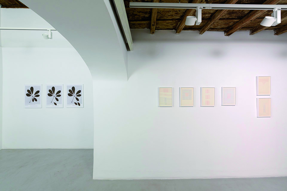 La scrittura visuale di Binga si declina in scrittura corporea nei suoi iconici alfabeti. Se negli storici collage di Alfabeto Pop (1977) lettera e corpo si abbracciano nella forma, nell’Alfabeto officinale il corpo stesso si fa lettera. In questa serie, esposta nella sua interezza nella mostra alla galleria Erica Ravenna, l’alfabeto di Binga si arricchisce di un significato naturalistico. Ortica, Lavanda, Verbena, Zenzero: il corpo dell’artista annuncia qui le iniziali dei nomi di piante officinali.
