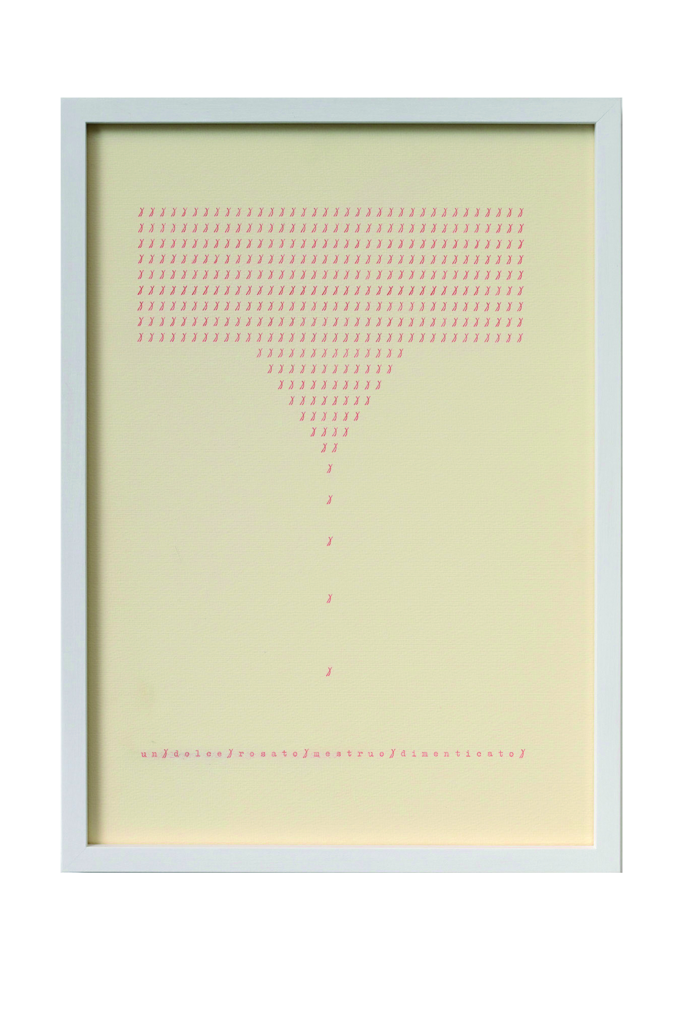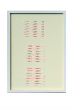Tra i lavori in mostra nella galleria Erica Ravenna, gli storici dattilocodici degli anni Settanta, nati dalla sovrapposizione di due diversi segni alfabetici di una macchina da scrivere. Tra questi, il dittico Un Seme Vivo / Un Dolce Mestruo (1978) che esplora la dimensione più concettuale del dattilocodice, esplicitandolo in due enunciati. Con la sua scrittura visuale, Tomaso Binga indaga l’uso del segno linguistico slegandolo dai più comuni impieghi. E’ così un nuovo linguaggio a partire dal gesto, rivestendo l’immagine letterale di nuovi, personali e universali significati. Tra operazione artistica e azione poetica, i lavori di “Scrivo di proprio pugno” si animano di un parlare muto e immaginario, come quello delle donnine anni Venti del dittico Pettinature per serate di feste (1980), opera inedita esposta per la prima volta in questa occasione.