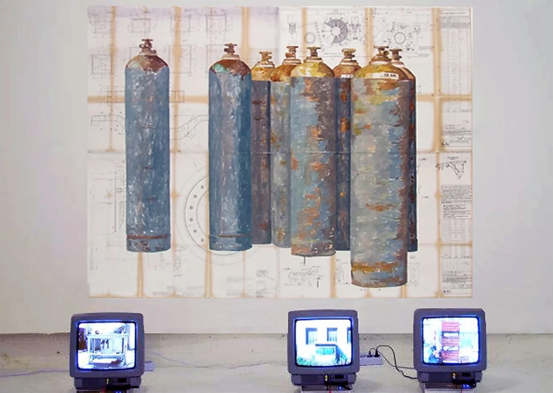 “The Factory”, presentata in collaborazione con Shazar Galery di Napoli, presenta un progetto installativo di Lello Lopez che pone l’attenzione sulla difficoltà che attraversa oggi il mondo del lavoro. Si tratta di una videoinstallazione composta da opere su carte cianografiche di progetti tecnici trovati in uffici abbandonati, e dal video The Factory, accompagnato da Epitaffio N.1 di Luigi Nono e dalla voce narrante della poesia di Garcia Lorca La Casida De La Rosa.