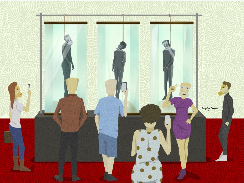 «Dal mio punto di vista la cultura occidentale ha intenzionalmente trascurato l’arte africana sin dalle sue origini, e la limitata percezione e comprensione della stessa è perfettamente rappresentata dall’importanza che viene data alle maschere. Durante la corsa colonialista europea per conquistare e spartirsi i territori africani, innumerevoli saccheggiamenti hanno devastato il nostro continente spogliandoci del patrimonio culturale. A cause delle razzie non abbiamo solamente perso dei reperti, ma siamo stati privati di parte della nostra storia e identità. Paradossalmente, come se tutto ciò non bastasse, ci siamo riappropriati di queste conoscenze attraverso le stesse persone che ci hanno saccheggiato. Ai manufatti rubati sono stati attribuiti significati e simbologie da sconosciuti che hanno deciso di collegare le maschere africane esclusivamente alla spiritualità e al malaugurio (“Juju”). Crescendo ho imparato a essere più critico riguardo a ciò che mi è stato detto al fine di decifrare la verità fra le bugie tramandate dai miei antenati alla mia generazione. Penso che sia abbastanza infelice il fatto che io sia dovuto andare all’estero e visitare il British Museum per rendermi conto di quanto certe opere di arte antica africana siano eccezionalmente belle e affascinanti.