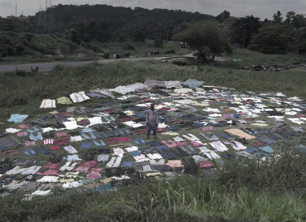 Ma l’immagine più rappresentativa di quest’esperienza è, a mio avviso Lavanderia di Banco in cui un uomo dalla fierezza totemica campeggia al centro di una radura adiacente al fiume tra panni colorati, un luogo noto come la lavanderia più grande d’Africa. L’artista, che ha ravvisato in quest’immagine un parallelo con la Venere degli Stracci, icona dell’Arte Povera italiana, ha allestito l’immagine come un wallpaper per donare una sensazione immersiva agli spettatori proprio all’ingresso della Fondazione Donhawi uno dei più prestigiosi spazi dedicati all’arte contemporanea che propone contestualmente mostre di artisti di origini africane.