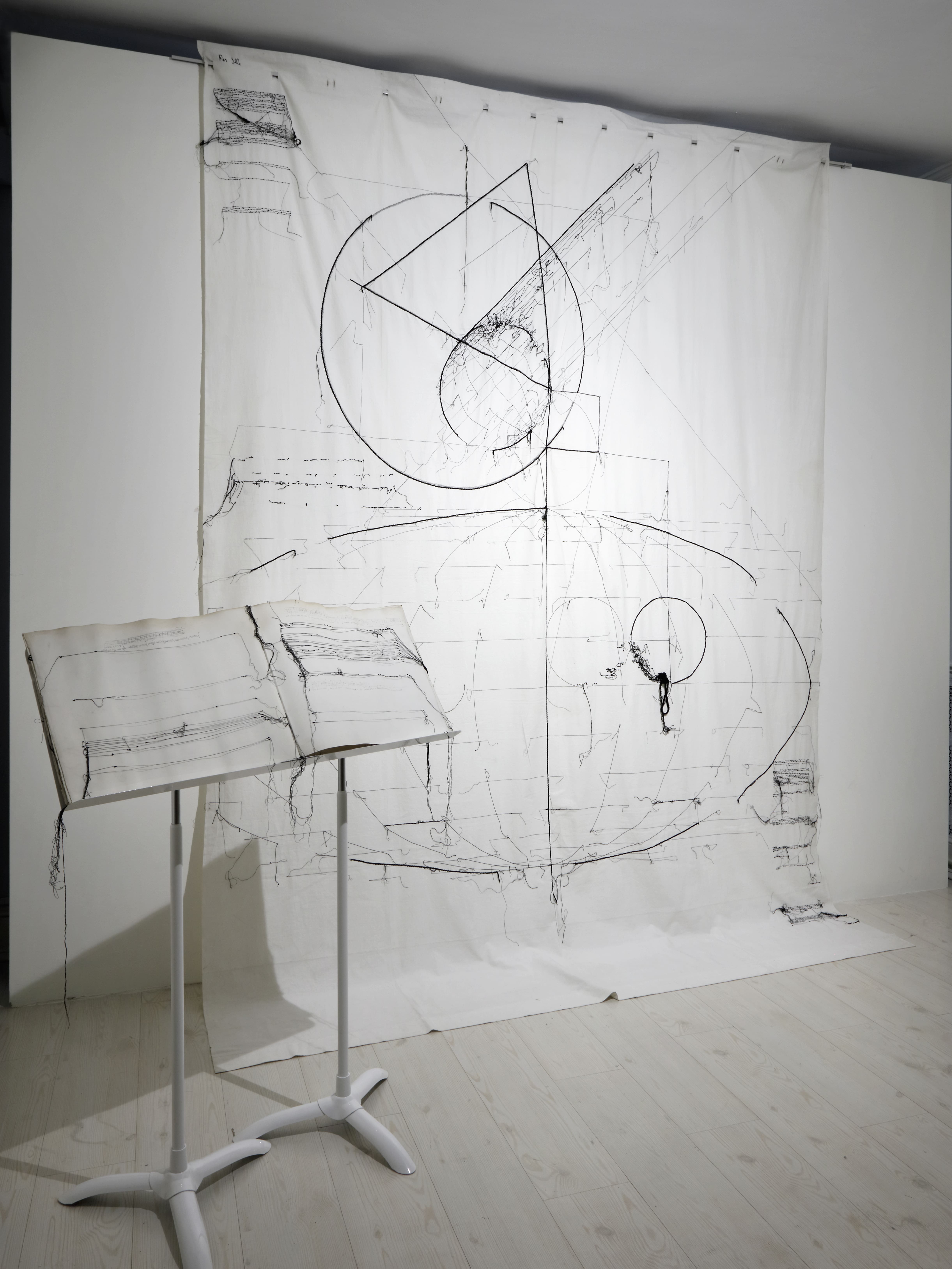 Di Maria Lai viene esposta in mostra Per Ille (1984), un’installazione nata dalla collaborazione con la cantante Ille Strazza. Tra arte visiva e musica, un fondale scenico tessuto dall’artista diventa spartito silenzioso per la voce di Strazza che, nel 1984, eseguì Il Canto dei sassi, oggi parte integrante dell’opera. Esposta nella Galleria Borghese dell’Istituto di Cultura, l’installazione assume una dimensione quasi sacrale, enfatizzando il legame tra narrazione, spazio e suono.