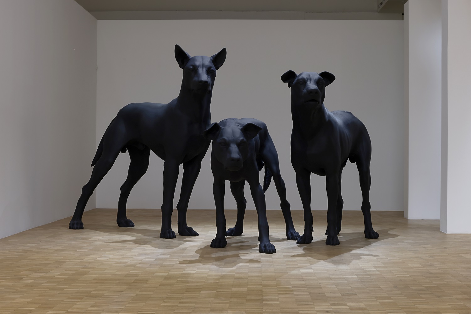 Con le sue sculture iperrealistiche e le sue installazioni perturbanti e fuori scala, Ron Mueck è considerato uno degli artisti più visionari e destabilizzanti in circolazione. Nato a Melbourne, nel 1958, e attualmente di base a Londra, Mueck ha lavorato per il cinema e la televisione e ha esposto in tutto il mondo, dalla Biennale di Venezia all’Andy Warhol Museum di Pittsburgh. La mostra alla Triennale di Milano, organizzata in collaborazione con la Fondation Cartier pour l’art contemporain, curata da Chiara Agradi e Charlie Clarke e visitabile ancora per pochi giorni, fino al 10 marzo, compendia il suo percorso in sei lavori, a In Bed, del 2005, che raffigura una donna pensierosa sotto le lenzuola, a En Garde, del 2023), composta da tre grandi cani neri dall’atteggiamento aggressivo.