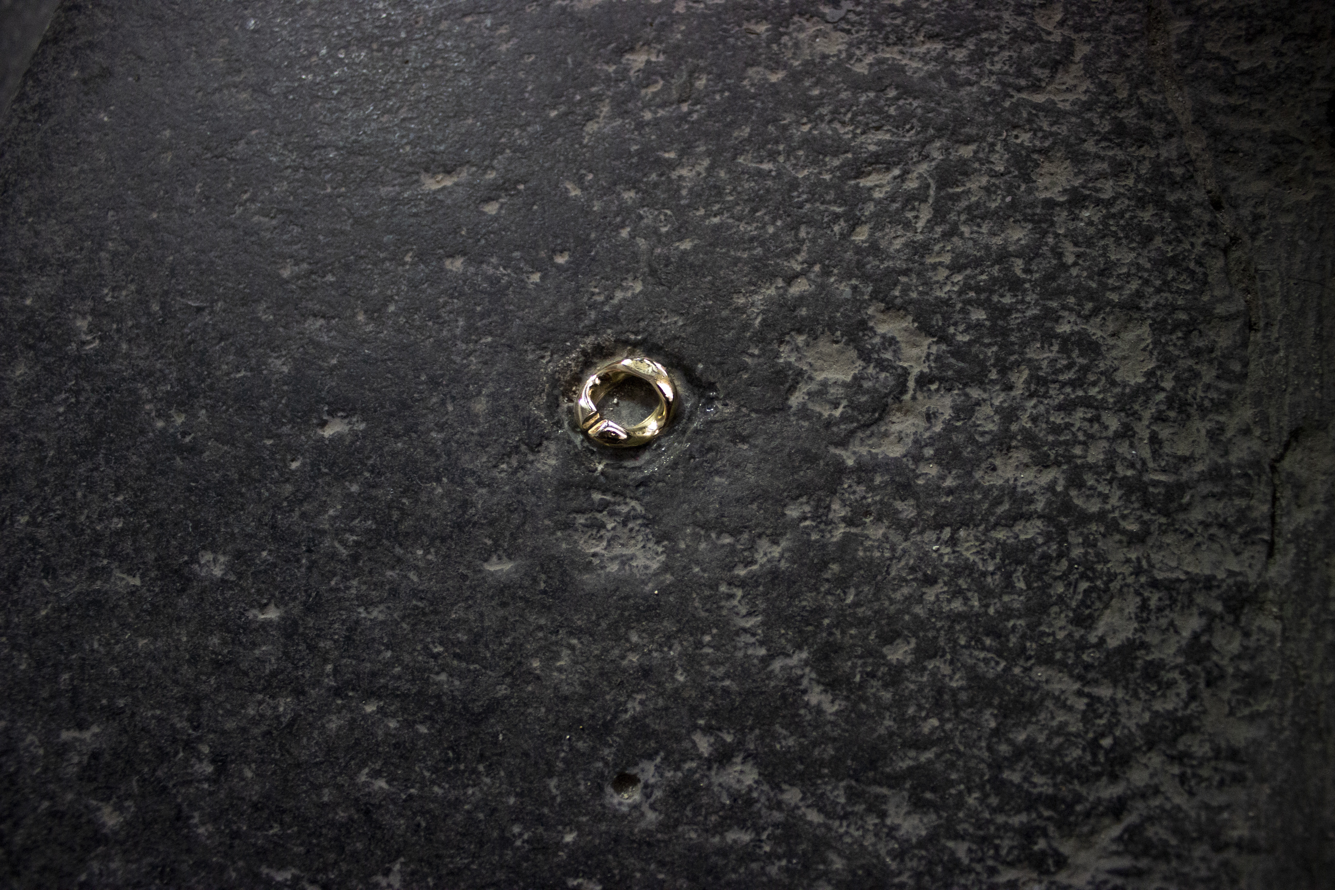E poi, chiaramente, persone che si incrociano e si salutano e che, salendo e scendendo, fanno attenzione ai propri passi sui gradini, nella cui pietra scura sono incastonati elementi decorativi di bigiotteria, spille, laccetti, pietre di vari colori, accessori per pelletteria custoditi dalle sorelle Dora e Fausta, le storiche abitanti dell’Atelier Alifuoco. Soffusa nel percorso obliquo delle scale, l’installazione di Veronica Bisesti attraversa la verticale del palazzo di via Domenico Cirillo e si adatta alle piccole incrinature dell’architettura e della storia, rileggendone o risanandone le sconnessioni e le fessure con innesti di una vezzosa lucentezza.