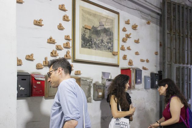 Presentate per la seconda edizione di Quartiere Latino, progetto di condominio-museo d’arte contemporanea a cura di Nicola Vincenzo Piscopo e con il supporto di Atelier Alifuoco, le opere di Bisesti, Bolognino e Memmola rimarranno nel palazzo di via Cirillo, insieme a quelle di Clarissa Baldassarri, Paolo La Motta e Gabriella Siciliano, invitati per il primo appuntamento. Nei labirintici spazi dell’Atelier, invece, hanno luogo gli studi degli artisti residenti, Maria Teresa Palladino, Lucia Schettino e Francesco Maria Sabatini, oltre che dello stesso Piscopo.