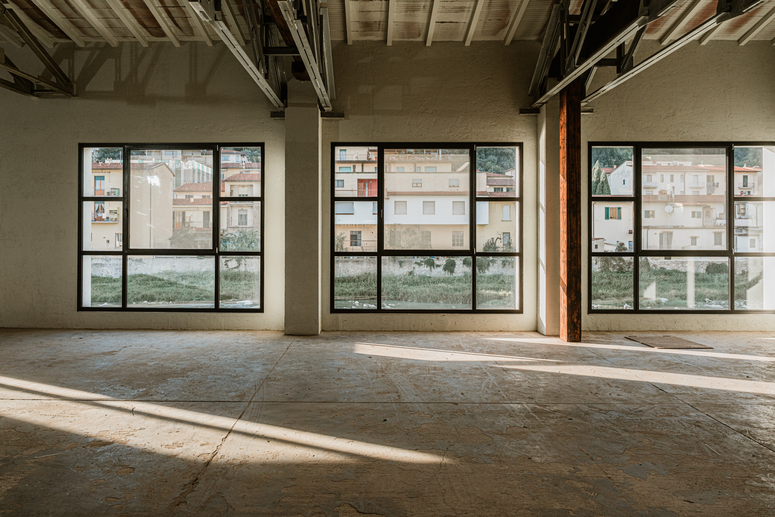 La Galleria, circa 240 metri quadrati affacciati sul Sieve, è pensata come ambiente principale per mostre, performance ed eventi, integrando anche uffici e un bar con giardino sul fiume. Poco distante, la Project Room, ricavata in un’ex centrale idroelettrica poi utilizzata come magazzino, offre 135 metri quadrati destinati a progetti site specific e installazioni sonore, mantenendo visibili le tracce della sua origine industriale. Due luoghi distinti ma complementari, concepiti come piattaforme aperte alla sperimentazione.