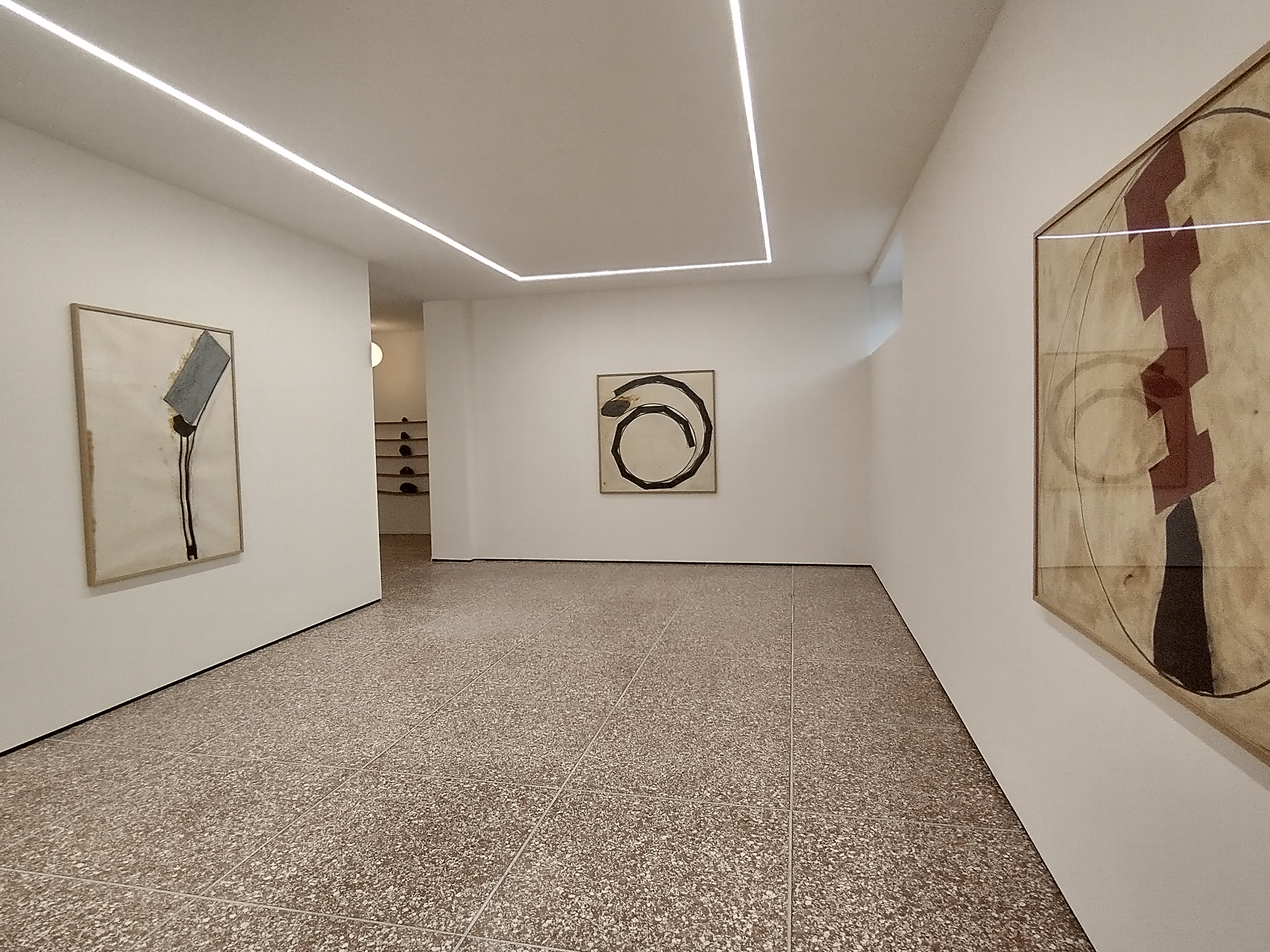 “Tensione, equilibrio, rischio, stabilità, sono gli elementi base di partenza di quasi tutta la ricerca di Gees”, si legge nel comunicato che accompagna questa prima esposizione raffinata e che percorre questo nuovo spazio a un passo dai binari, in un perfetto cortile milanese post-moderno che tra le curiosità ha anche una “stanza segreta” ricavata in un ascensore fuori servizio che il gallerista, promette, sarà utilizzata per qualche futuro site-specific.