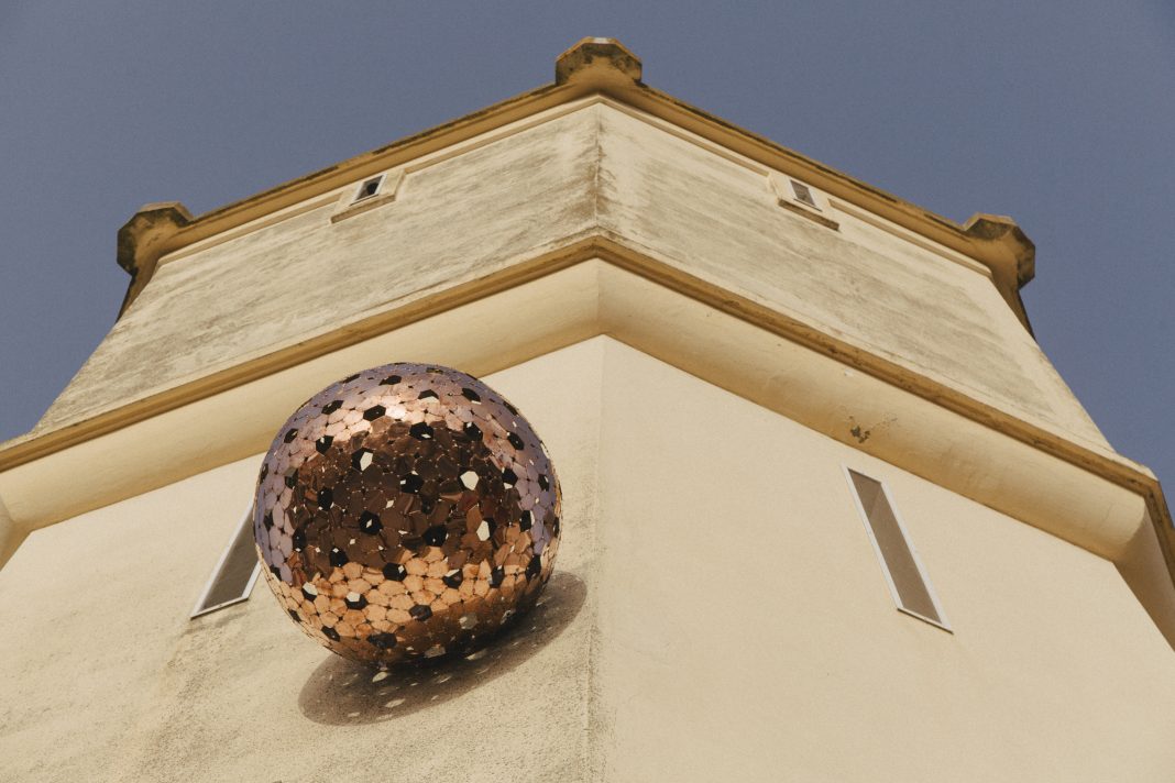 È la distanza tra corpi a segnare la riflessione di Marullo; “afèlio”, come indica la sua etimologia dal greco antico ἀπό «lontano da» e ἥ λιος «sole», è infatti il punto orbitale più lontano che un corpo celeste raggiunge rispetto alla stella madre del sistema solare: il Sole. La definizione che nasce con Keplero, sollecita Marullo ad aprire una riflessione sulla condizione tra corpi in un sistema di dipendenza da un altro centrale, per ripensare sia al loro posizionamento sia ad una visione di insieme tra soggetti e oggetti. È la relazione tra binomi io/altro, centro/periferia a rovesciarsi attraverso la materia delle opere realizzate e attraverso l’esperienza innescata nello spazio che le ospita. L’opera principale è “Lorica”, un astro in maglia di rame che, deviando dalla sua orbita spaziale e incastratosi sulla torretta dell’acquedotto del paese, non solo interagisce con l’ambiente circostante, ma anche con il cosmo stesso. Ogni giorno infatti, in accordo con il Sole, proietta la sua ombra sull’edificio e fungendo da meridiana evidenzia il trascorrere del tempo. Inoltre, sottoposta a un processo di naturale ossidazione, l’opera continuerà a trasformarsi nel tempo, segnando la sua inesorabile relazione con gli agenti atmosferici.