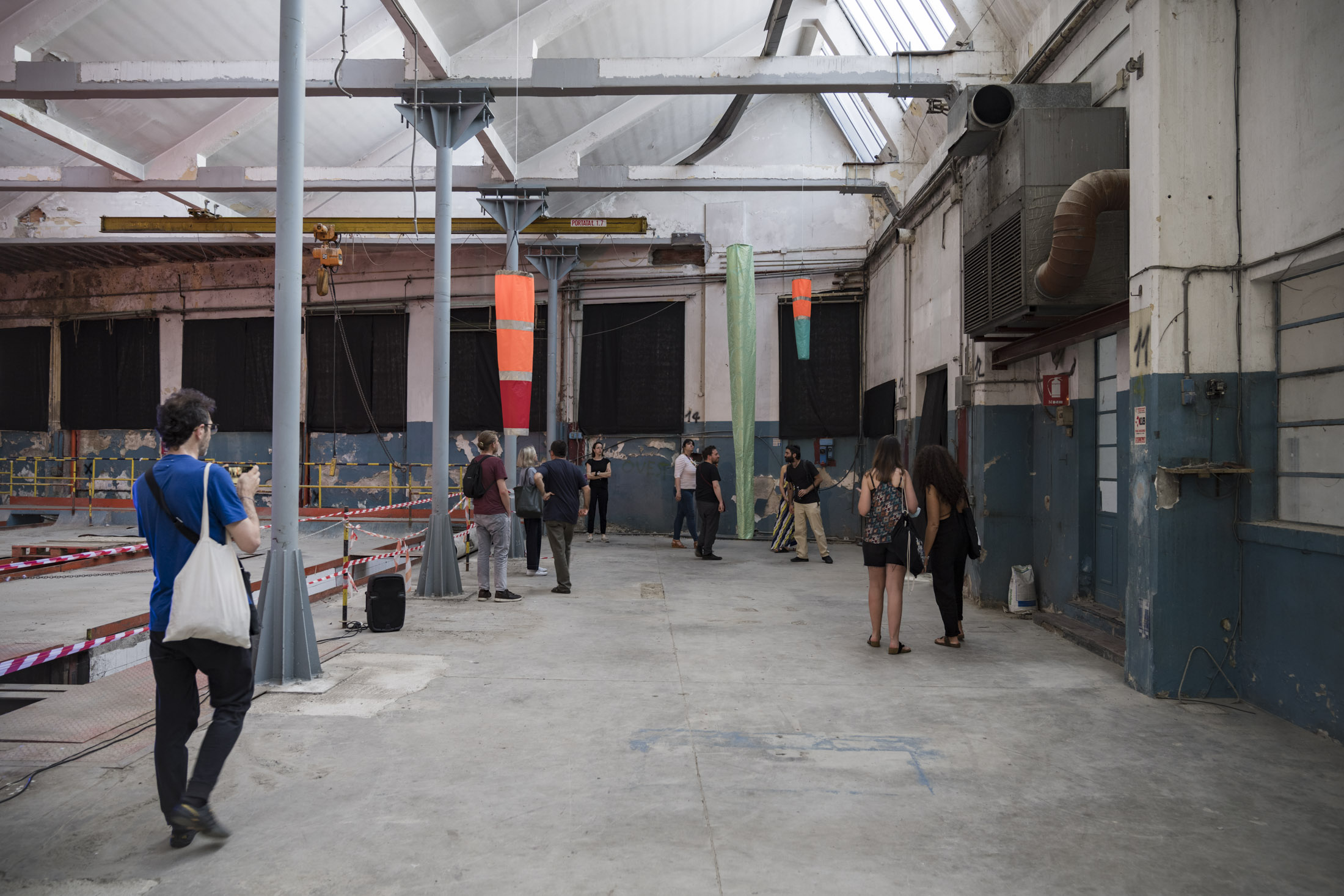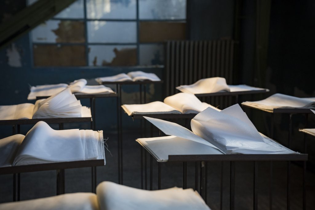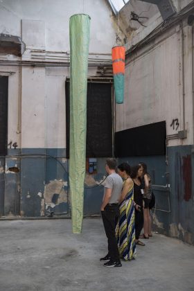 Margherita Morgantin è ricorsa alle maniche a vento, un elemento ricorrente nella sua pratica artistica e che viene dalla sua attenzione al clima, dal suo interesse per la meteorologia. Anche l’esperienza personale è tassello dell’opera: una storia di profughi in viaggio su acque spaventose. Così, le maniche a vento come «Segnalatori sensibili e soli», hanno ridisegnato lo spazio attraverso l’aria, con un gesto leggero ma carica di significato. Gregorio Botta ha orchestrato l’aria in un soffio che smuove le pagine bianche di libri ancora non scritti.