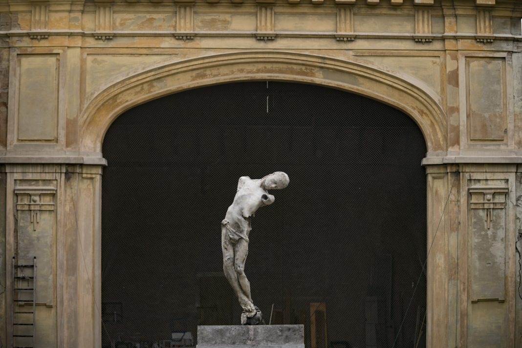 Filippo Tappi e Nicola Samorì hanno trattato l’aria concretizzandone il movimento con un’installazione e una grande scultura. Questa seconda, intitolata Artaud (2021), materializza un corpo piegato come una piuma ma col peso di una carne pietrificata. Questo è il lavoro che fa da simbolo al festival, la sua l’immagine-manifesto, presentato nella cornice dell’Arena Forlivese. Svelate una dopo l’altra, le opere sono andate a comporre questa “partitura”, come l’ha definita Davide Ferri, di Ipercorpo: un insieme completo solo alla fine del festival.