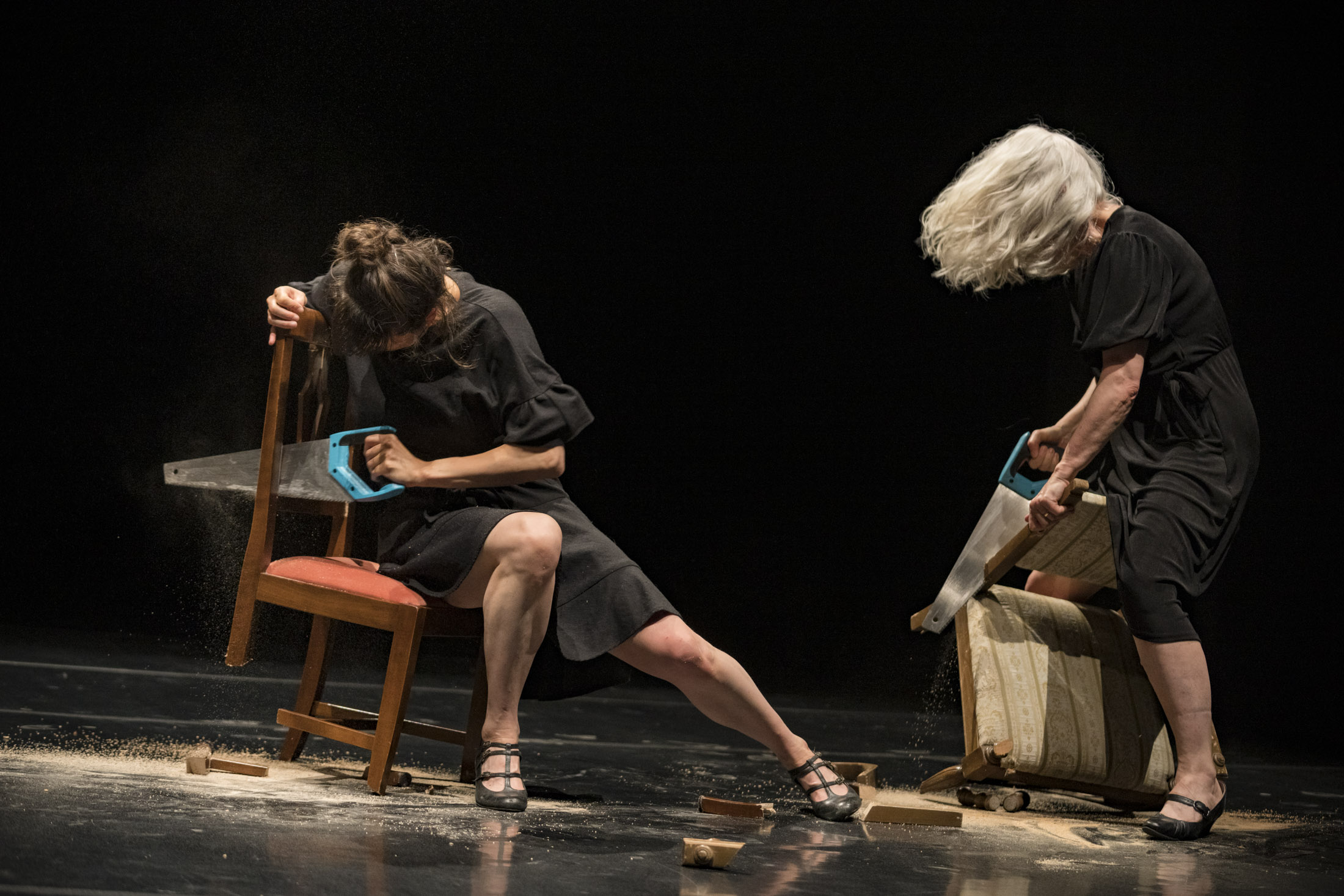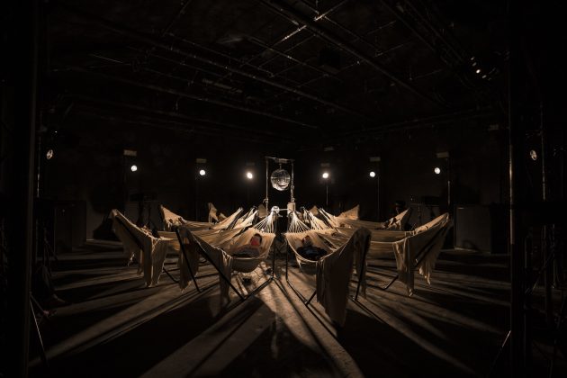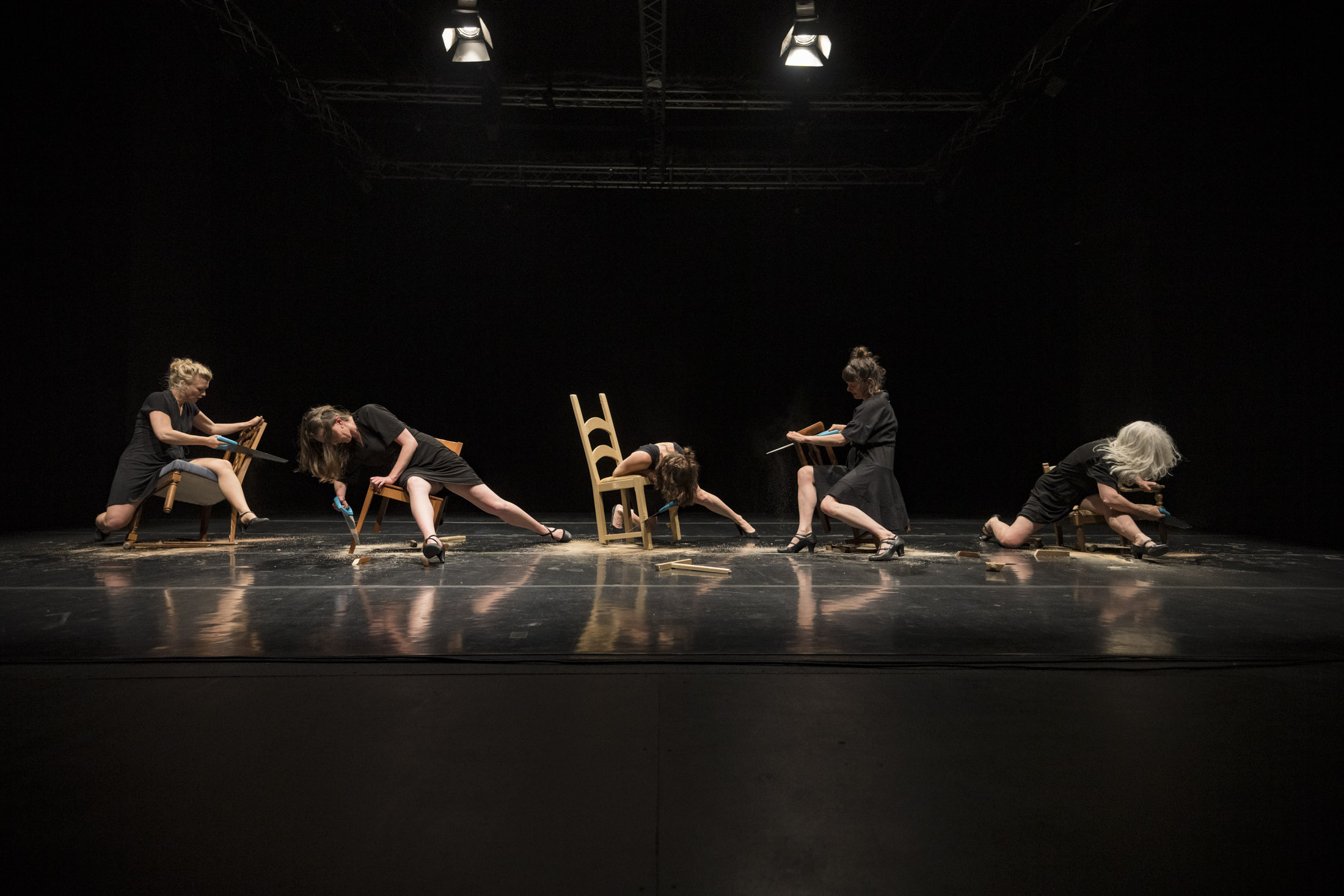Per la sezione teatro e danza, curata da Claudio Angelini, Mara Serina e Valentina Bravetti, altrettanto avvolgente è stata l’esperienza di Sonora Desert dei Muta Imago al Teatro Félix Guattari. La lettura di memorie, appunti, estratti e testi sulla percezione e sul tempo, ha condotto in un ambiente buio, dove si viene letteralmente cullati da un gioco di suoni e di luci che trasporta in un’altra dimensione. Un viaggio sensoriale nel deserto di Sonora, accompagnati dalle musiche di Alvin Curran. Di tutt’altro taglio la perfomance A String Section, negli spazi di EXATR, della coreografa Leen Dewilde e del collettivo internazionale Reckless Sleepers. In scena cinque donne eleganti si sono presentate a fianco a cinque sedie e armate di sega. In una sinfonia di tagli su legno, man mano le sedie si sono scomposte, amputate e, di pari passo, si sono scomposti i corpi di queste donne in bilico su di un precario equilibrio.