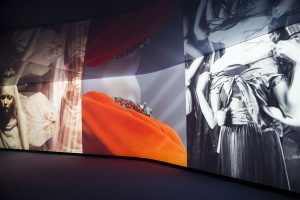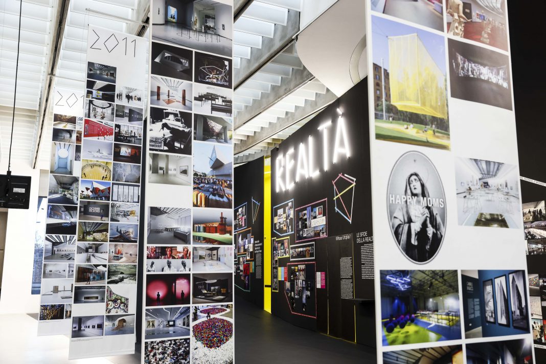 Un racconto utile per entrare nel cuore della mostra, che occupa l’intera galleria 4 del museo, trasformata per l’occasione in un gigantesco ipertesto (forse un filo eccessivo) affidato allo studio olandese Inside Ouside , dove si sviluppano le sezioni così intitolate: Il Maxxi e la città, La moltitudine, Mondi, Le sfide della realtà e Credete nell’innovazione? precedute da una timeline dedicata ai progetti realizzati tra il 2010 e il 2020, collegata con un video, realizzato dall’Ansa, dove scorrono gli eventi di cronaca degli stessi anni. Alle pareti le grandi “isole visive” di immagini incorniciate da scritte su nastri colorati, delle quali a volte risulta arduo seguire l’andamento: una delle più interessanti è Mondi, che esplora l’evoluzione della scena globale della creatività in maniera stimolante e puntuale.