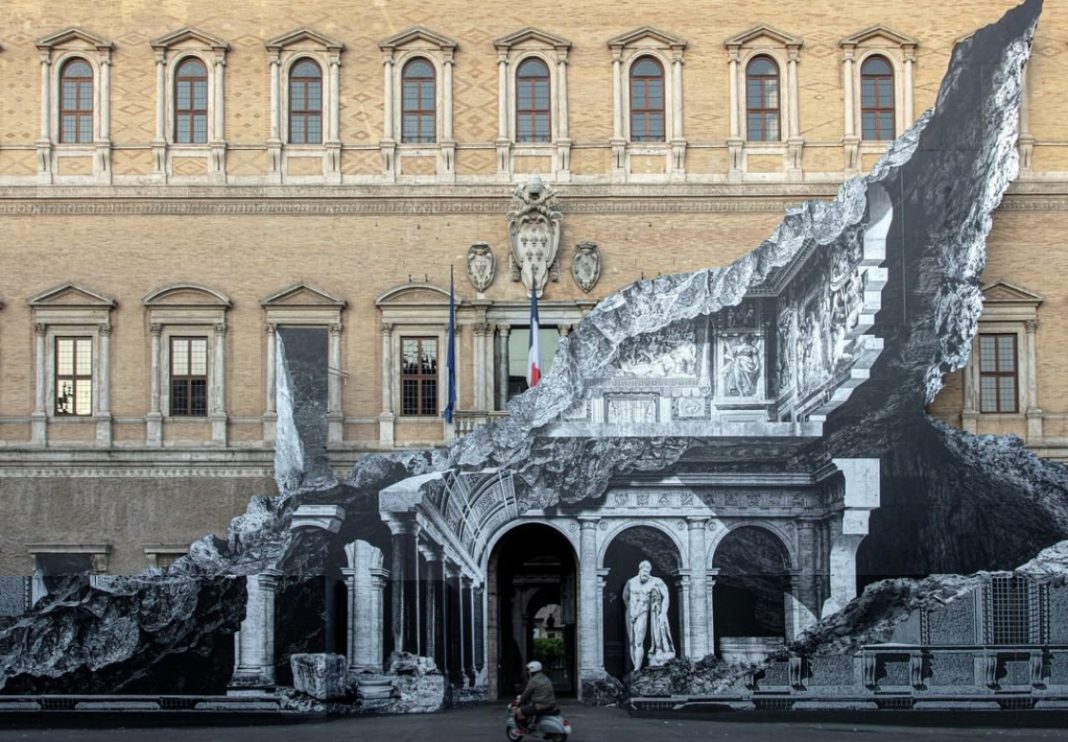 Un’altra “ferita” di JR in Italia: stavolta a Roma, a Palazzo Farnese
