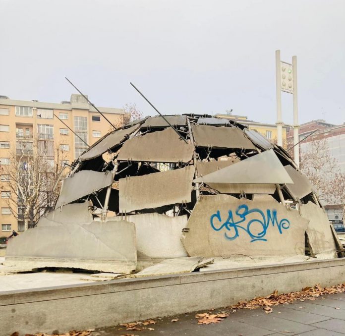 Vandalizzata con una scritta a spray l’iconica fontana Igloo di Mario Merz a Torino