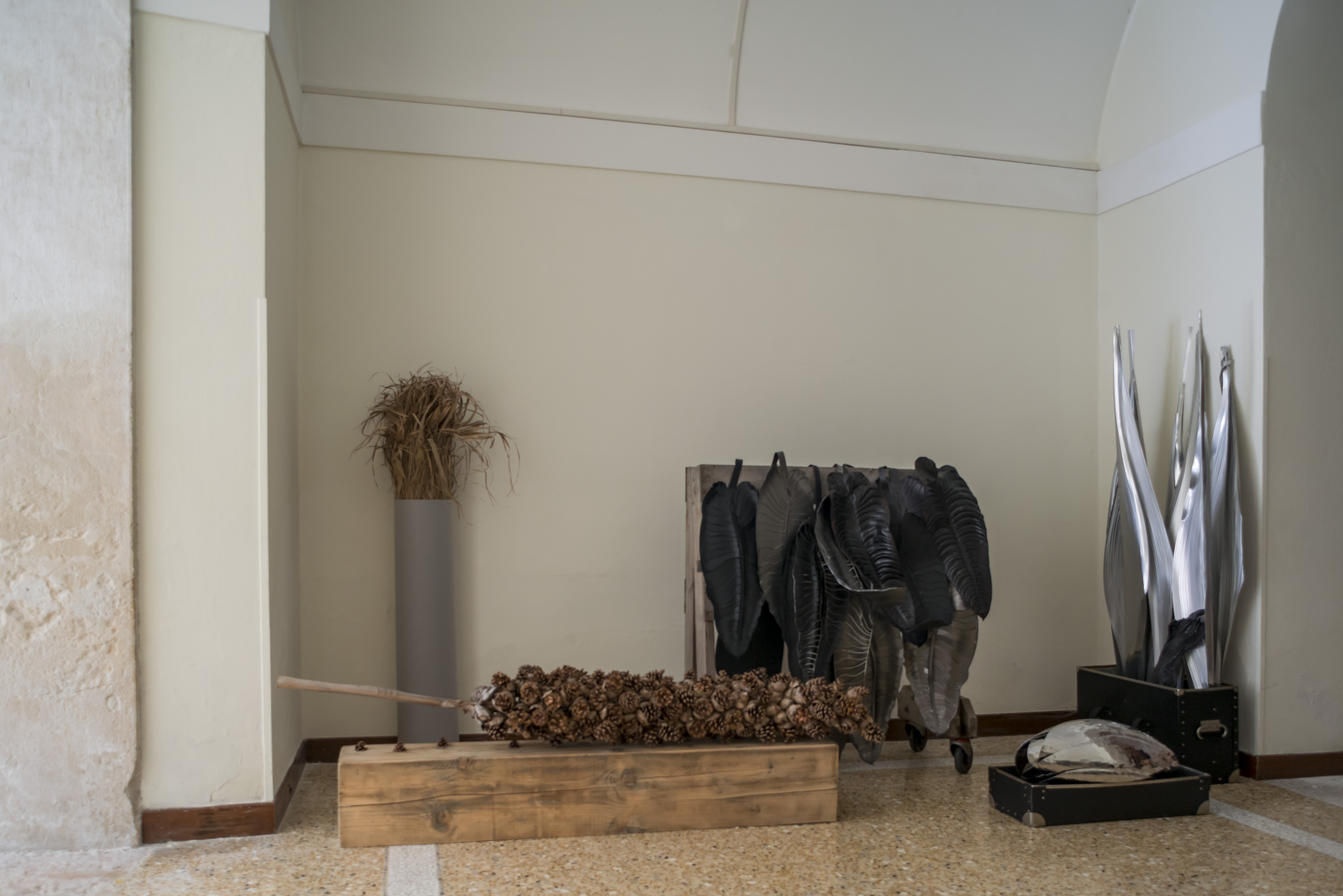 A conclusione del nostro itinerario giornaliero, ci dirigiamo sempre a piedi, in direzione Arsenale, più precisamente verso il Venice Meeting Point al Circolo Ufficiali Marina Militare, per l’opening della mostra collettiva De Rerum Natura, a cura di Mara Sartore e prodotta da Lightbox. La mostra si configura all’interno di uno spazio non usuale, estremamente carico di oggetti e persone, creando un processo di straniamento che attrae l’attenzione del visitatore e interrogandolo sulla sua presenza e la sua esperienza.