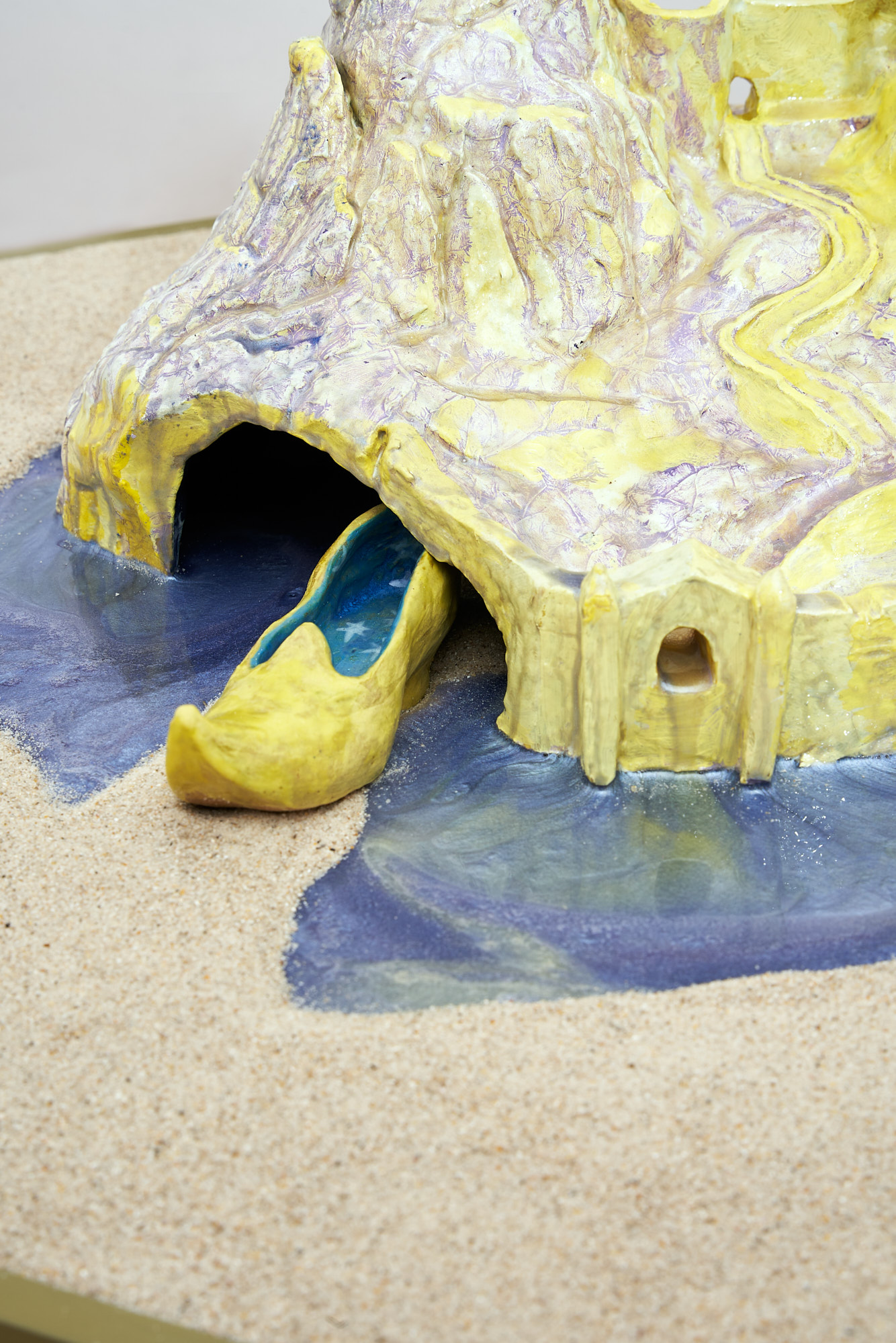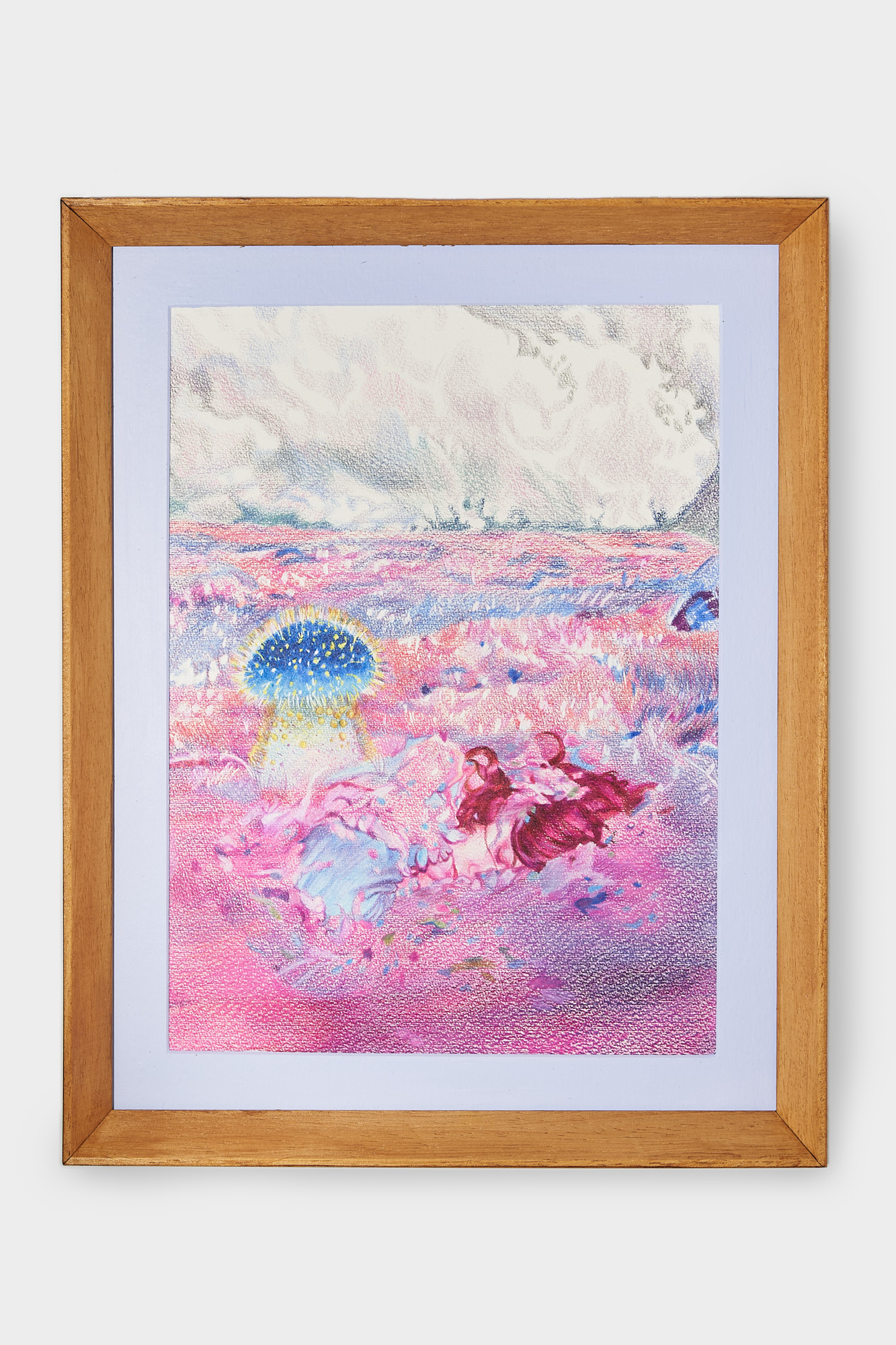 A seguire: un delicato Fragola Octopus in ceramica, il volto di una donna che dorme tra la vegetazione variopinta, le falene rosa di Sunlight Whispering Slumber.E poi ancora: le zampe azzurro acceso e la coda-scettro del grifone al centro dell’opera Guardians of the Silent Sands, un’opera preziosa per capire a pieno la mostra. Qui, infatti, figure arcaiche, genii loci, si stagliano su un panorama desertico, che ci rimanda a pianeti lontani e a concetti di astrofisica. Dunque: spirito e scienza, due elementi che non si escludono a vicenda, ma anzi si fanno complementari.