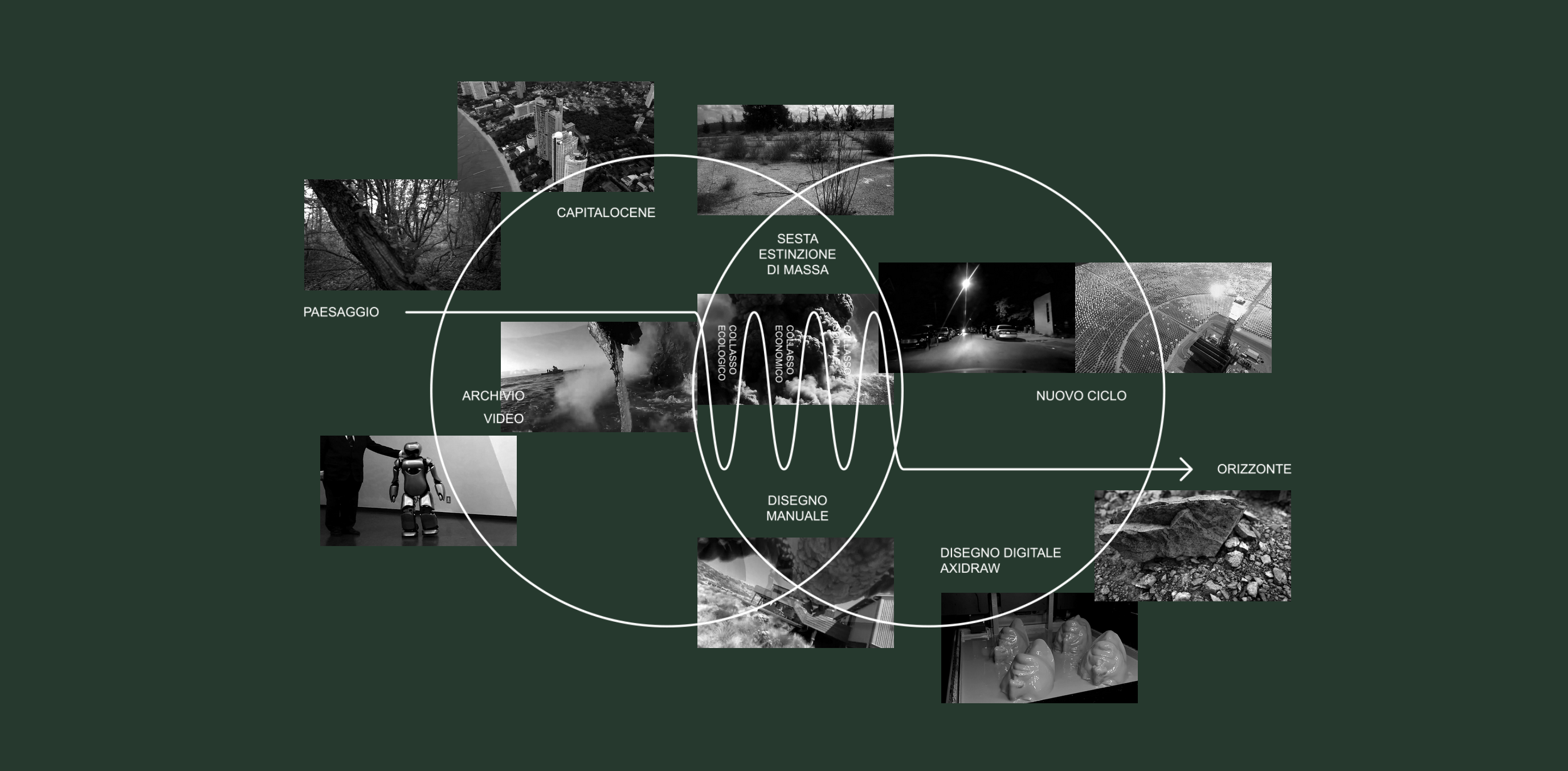 «“Vertigini” è un uno studio formale sul paesaggio in un tempo di rapidi mutamenti ecologici e sociali che, come predetto da molti studiosi tra cui Richard Leakey e Roger Lewin, è definibile come la vigilia della sesta estinzione di massa, la prima causata interamente dall’attività umana», spiega Smerdel. «L’ambiente è sempre più compromesso dall’intervento umano e l’umanità è sempre più sopraffatta dai profondi cambiamenti climatici da essa stessa generati che la porterà verosimilmente alla sua fine, per come la conosciamo. “Vertigini” vuole mostrare in maniera sperimentale ed originale questi enormi mutamenti del pianeta e di ciò che comunemente definiamo paesaggio, attraverso l’interazione di più forme di rappresentazione visuale (umana e meccanica) con un’attenzione particolare ai piccoli dettagli che condizionano la nostra quotidianità. «Mi interessa molto che emerga una certa ambiguità tra disegno manuale e meccanico oltre che nella rappresentazione stessa del paesaggio. Questa ambiguità dovrebbe spingere lo spettatore a chiedersi che cosa stia effettivamente guardando».