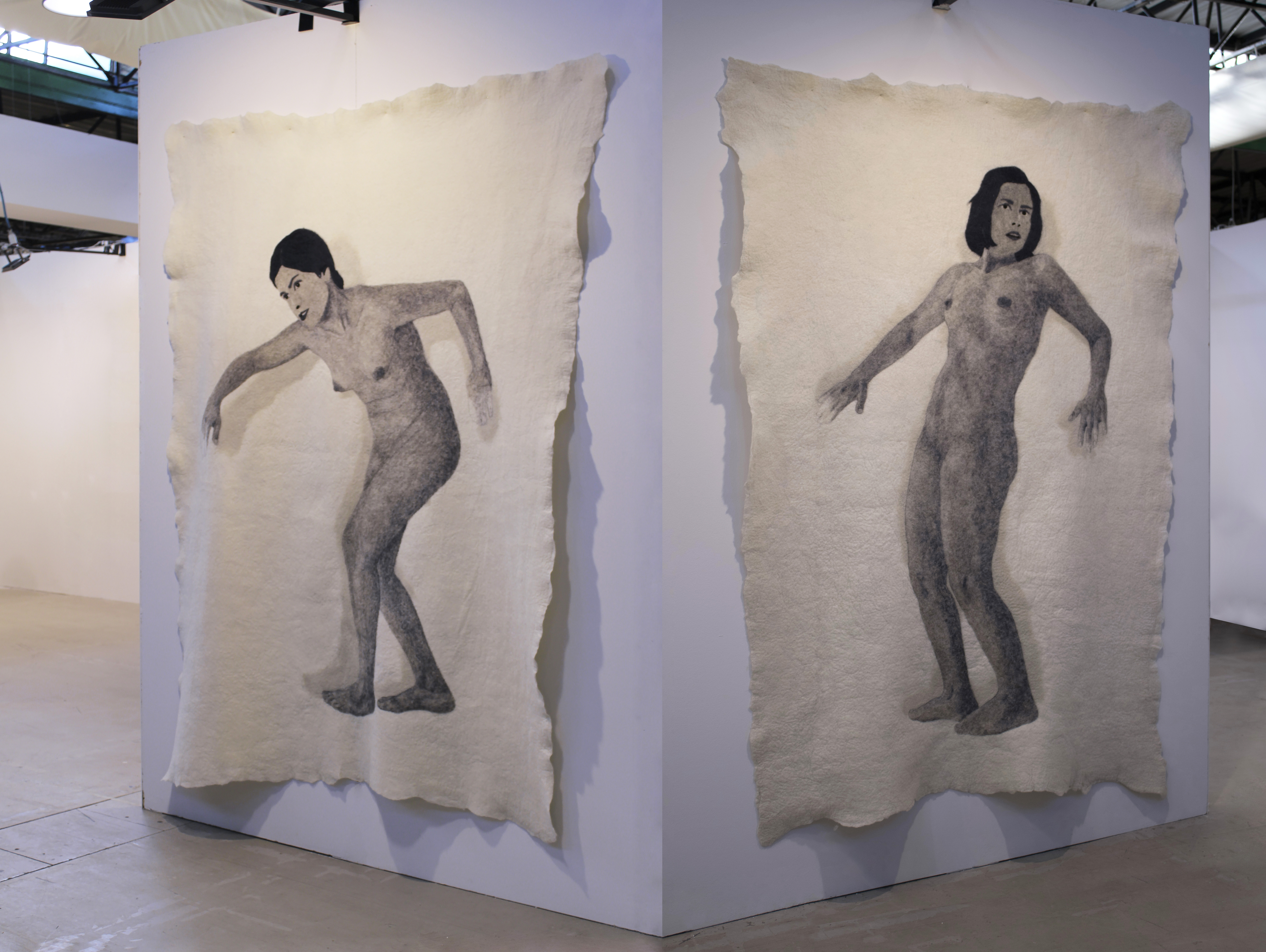 Il percorso inizia con i disegni di nudi di Pegah Pasyar realizzati con la tecnica del monoprint su carte antiche: sono corpi spogliati di qualsiasi connotazione culturale, esseri umani che si relazionano. L’applicazione della foglia oro, così come l’essenzialità delle forme, è un retaggio dello studio giovanile della tecnica di miniatura persiana.