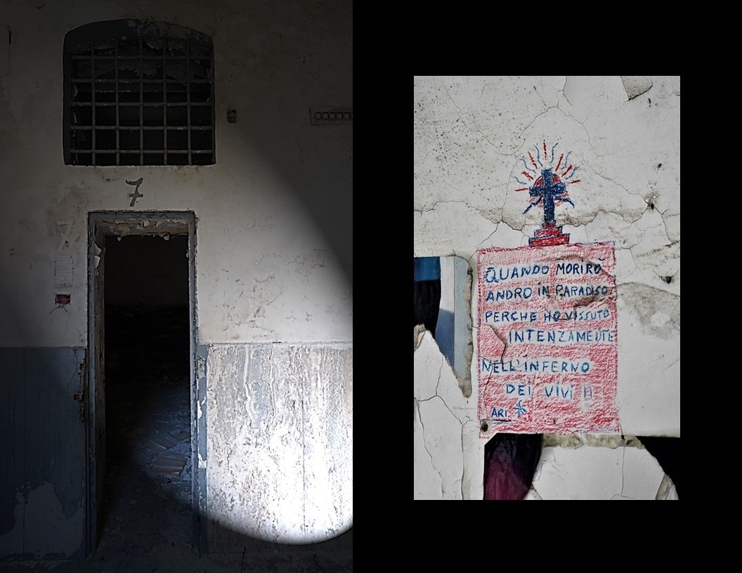 All’interno delle ex celle – tra le scritte dei detenuti e accanto a pile di faldoni del tribunale penale – fino al 30 gennaio 2024 sono esposte le opere di: Sergio Mario Illuminato (pittura-scultura), Rosa Maria Zito (fotografia, scenografia), Federico Marchi con Roberto Biagiotti e Alessandro Pagoni (cinema), Patrizia Cavola e Ivan Truol con Camilla Perugini e Nicholas Baffoni (danza), Andrea Moscianese (musica) e Davide Palmiotto (arte dei suoni). Questi professionisti dell’arte hanno messo a disposizione le proprie competenze, allo scopo di invitare gli spettatori a guardare oltre i muri e le barriere per scoprire la bellezza e la complessità della vulnerabilità umana. Pertanto, l’arte si tramuta in un dispositivo che consente di attivare sia le relazioni sociali, sia la nostra forza a partire proprio dal suo contrario: la fragilità.