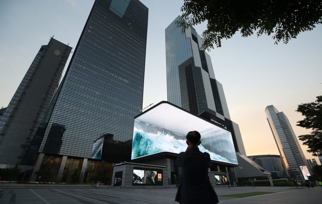 Dimentichiamo la Grande Onda di Hokusai, ora c’è Wawe a Soeul, un’enorme istallazione animata, situata nella piazza Coex K-Pop.