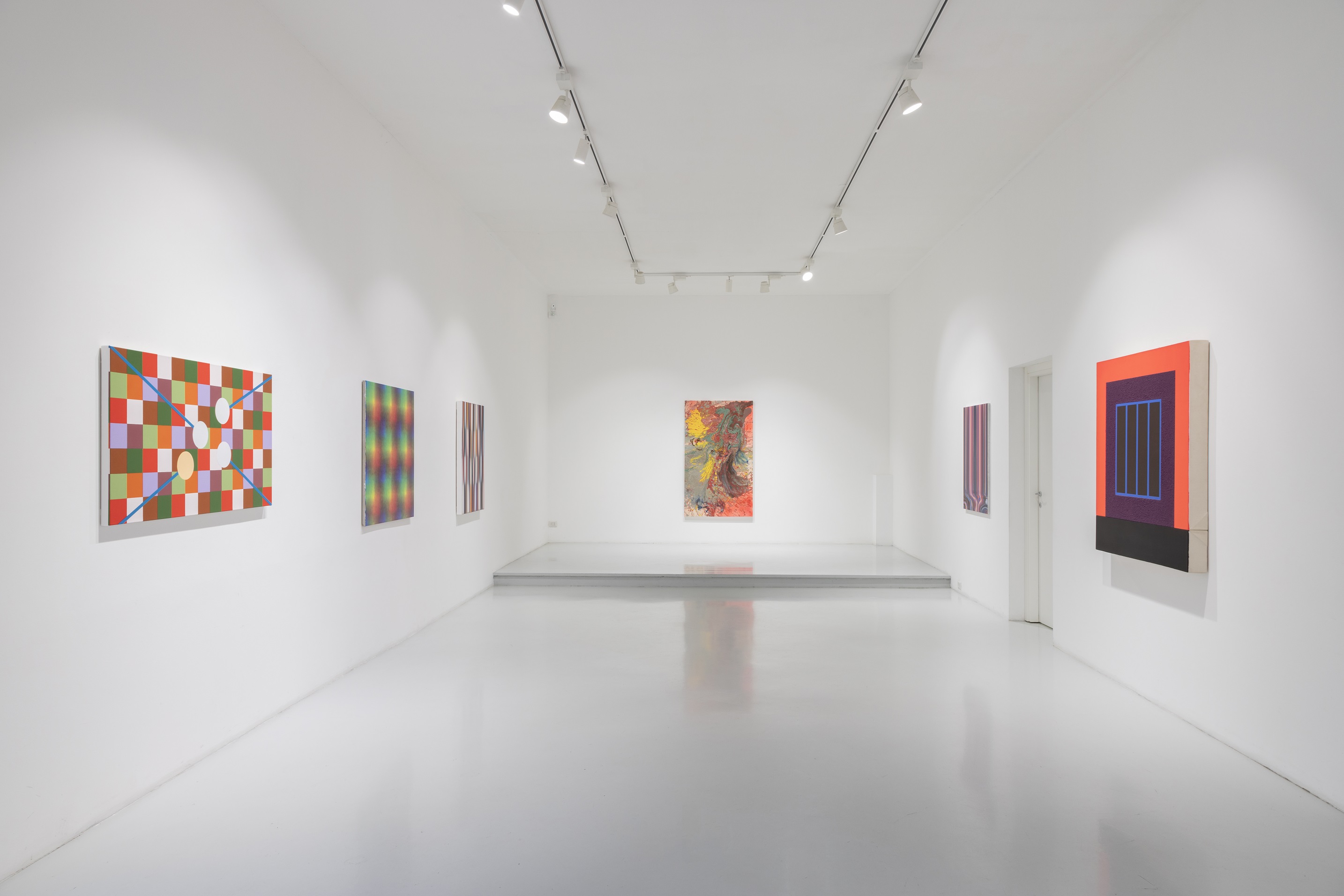 Interessanti anche i lavori di Carmengloria Morales, Dittico S 18-3-01, 2018, pigmenti, metalli, acrilici su tela. I lavori geometrici a griglia di Peter Halley, Peter Schuyff, Daniel Sturgis e Mark Francis che vivono di espliciti riferimenti storici. Senza ignorare le colate di stampo processuale di John Armleder e Ian Davenport.