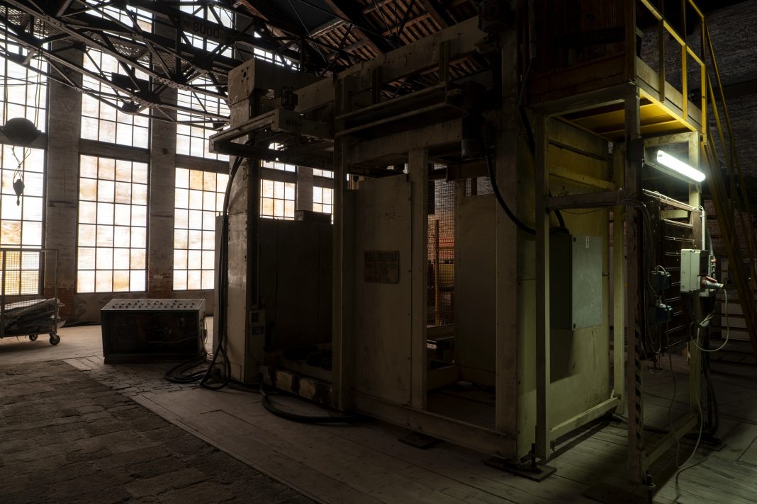 Sono veri i macchinari datati che provengono da una fabbrica, quanto è vero il telefono vintage nella stanzetta dell’operario/a ormai abbandonata (al quale però sembra che il gestore telefonico si sia dimenticato di disattivarne la linea). Sono vere le reti del letto, anche se non sufficientemente usurate per essere state realmente vissute da qualcuno, così come le bobine, non troppo consunte, sui tavoli nell’area della manifattura, ma sono state disegnate ad hoc le luci che illuminano ogni postazione. È ricostruito il piccolo pontile, su cui non possono salire più di poche persone alla volta, così come la porzione di mare agitato e le fioche luci in lontananza che dovrebbero, secondo l’artista, evocare le lucciole, riferendosi all’articolo di Pier Paolo Pasolini — Il vuoto del potere, pubblicato sul Corriere della Sera, 1° febbraio 1975 — in cui scriveva “Darei l’intera Montedison per una lucciola”. È di Gian Maria Tosatti la parete di lastre metalliche di cui non tutti sembrano essersene accorti. È questa la sola autentica opera che l’artista ha prodotto per Venezia e che rimarrà, una volta smantellati il set e la cornice narrativa? I macchinari, le casse, gli aspiratori torneranno dove sono stati prelevati o verranno conservati in un magazzino in quanto lavoro installativo dell’artista? E la poesia? E le lucciole, ricordo nostalgico di un tempo che fu? Svanirà tutto magicamente come quando in teatro scende il sipario.