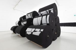 Curioso il Padiglione dell’Uruguay, dove un sarto si aggira a prendervi le misure. Qui, l’artista Gerardo Goldwasser, con la mostra “Persona”, opera una riflessione su quella che si potrebbe definire una vera e propria “omologazione dei costumi contemporanei”, fenomeno che, ovviamente, passa anche per l’abbigliamento. Rotoli di morbido tessuto industriale nero che, sul retro, ospitano le forme di cartamodelli, sono in potenziale attesa per essere tagliati in maniera uniformata e identica per corpi che – peggio per chi ci vorrebbe tutti uguali – sono destinati a restare tutti diversi e ognuno provvisto della propria, a volte difficile, intimità.