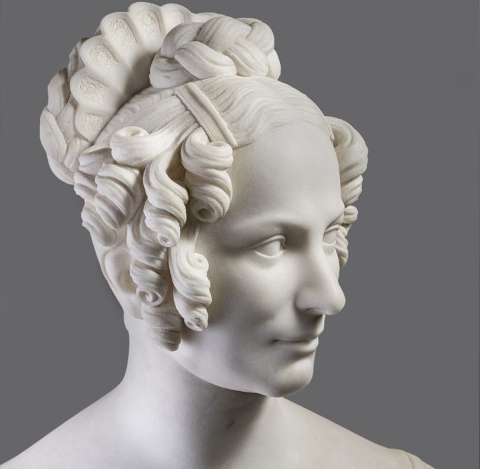 Lorenzo Bartolini è anche quello che possiamo definire un intellettuale a tutto tondo. Il suo atelier era un salotto, un circolo, dove si discuteva, si ascoltava e si faceva musica (Bartolini suonava il violino e si esibiva anche in concerti con i suoi amici), si disquisiva di estetica e di sentimenti. E le donne avevano un loro ruolo importante. Nello Spazio Bianco di Palazzo Rovati, si è voluto quasi ricreare questa atmosfera salottiera con l’esposizione di diversi busti femminili in dialogo tra loro. In questi lavori non si può non notare, accanto all’attenta analisi psicologica dei volti delle donne ritratte (tra le altre, una moglie di banchiere, una duchessa, una principessa e la stessa moglie dell’artista), l’accuratezza delle riproduzioni delle loro capigliature. Anche qui, Bartolini riprende con estrema attenzione i particolari delle acconciature non tanto per un gusto mondano o esibizionistico quanto perché anche quelle sono espressioni dei tempi in cui vive e lui vuole poterne cogliere il senso.