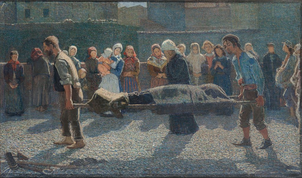 Il ritorno dei naufraghi al paese (L’annegato), 1894, olio su tela, 34,5 x 57,5 cm, Collezione privata, Courtesy Gallerie Maspes, Milano