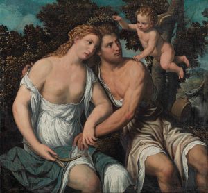 Sorprendono i dipinti ispirati al mito, come le allegorie che diventano il pretesto per inscenare l’erotismo in modo nuovo, con la rappresentazione di gesti audaci ma non volgari. Così, a colpi di pennello, Venezia mette in scena una visione più profana che sacra della figura femminile, ma lo fa con eleganza sfrontatamente pudica nel rispetto della personalità della donna, come si vede nella Laura firmato e datato di Giorgione. L’opera è la prima del gruppo di belle veneziane a seno scoperto, diventata l’icona della serie “Apri il cuore”, come era conosciuto nella letteratura del tempo: per la curatrice non si tratta di cortigiane ma spose che aprono il cuore che nell’atto di scoprire il simbolo della sincerità, fedeltà in amore, oltre che un segno di consenso al matrimonio, di bellezza d’animo.
