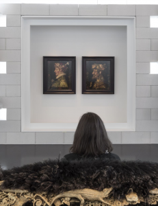 Chi troviamo a Metz? Daniel Fröschl, Duchamp, De Chirico, Dalì, Bacon, Baj, Boetti, Cattelan, Sherman, Messager, i Daft Punk, e non solo. Daniel Spoerri con Corps en morceaux (serie, 1993), in cui assembla diversi oggetti riciclati per creare figure umane con tanto di testa, braccia e gambe, ma anche Picasso con Fragment de pignate, décorée d’un visage (1950) o Chéri Samba con il coloratissimo Stupéfaction (acrilico su tela, 2009). Ewa Juszkiewicz con Untitled, da Elisabeth Vigée Le Brun (2020), ricopre il viso di una donna usando elementi del mondo vegetale, mentre Luigi Ontani in Bacchino (fotografia a colori, 110 su 200, 1970), posa nudo con il sesso ricoperto da grappoli d’uva. In questo universo mutevole intessuto da misteriosi legami tra l’umano, il vegetale e l’animale, si intravedono originali corrispondenze tra artisti tanti lontani quanto diversi. Si va da Patrick Neu con Maschera (2010) in cui riproduce un volto realizzato con fragili ali di api, a Lavinia Fontana con il bellissimo ritratto di Antonietta Gonzales al Gonsalvus (1594-1595), colpita dalla sindrome di Ambras, a Zoe Leonard con la sua serie fotografica Preserved Head of a Bearded Woman (Musée Orfila) del 1991, che vede una testa di donna con barba conservata in una teca di vetro, fino al film di Pierre Huyghe, Untitled (Human Mask) del 2014.