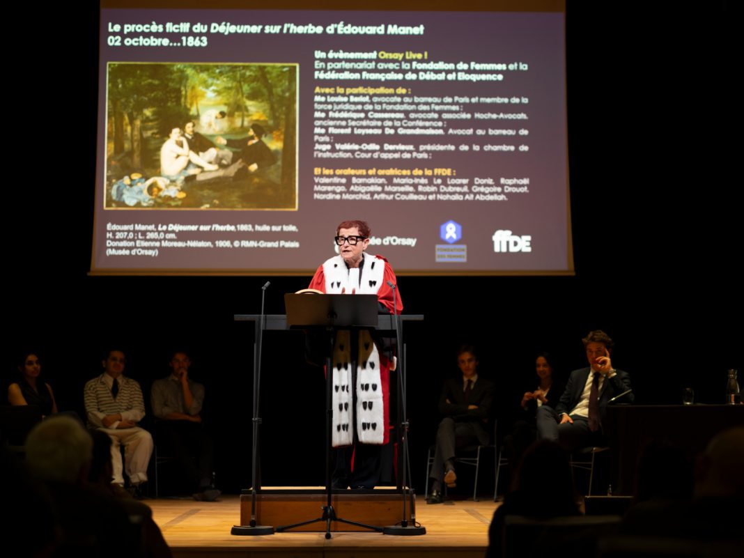 Carla Tomé, responsabile della programmazione culturale del Musée d’Orsay, ha affermato che la parte più difficile nell’ideare l’evento è stata proprio questa: «All’inizio erano soprattutto le ragazze a voler partecipare. Avere solo donne a rappresentare una maggioranza di uomini sarebbe stato un po’ eccessivo». La stessa giudice Dervieux è intervenuta ripetutamente sottolineando l’ironia di una donna che giudica un’altra donna: «A pensarci bene, ci vorranno diversi anni prima che una donna possa diventare magistrato».