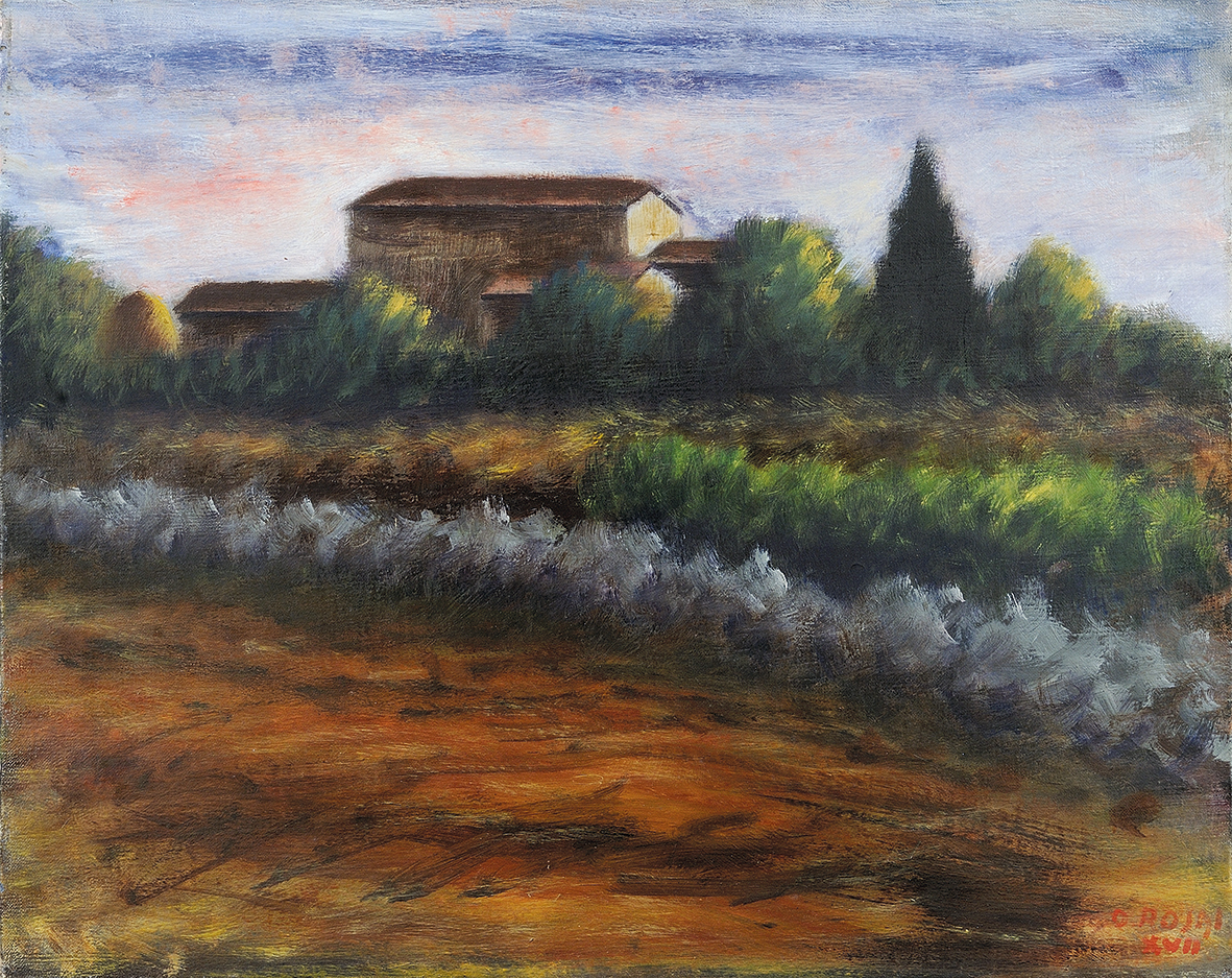 Il suicidio del padre Giuseppe nel 1922 porterà Ottone a interrompere la sua carriera artistica per prendere in mano l’attività paterna e cercare di riassestare anche economicamente le sorti della famiglia. Dal 1922 al 1927 sono anni bui, di sconforto e frustrazione, anni nei quali si è dedicato alla pittura solo sporadicamente. Riprende a dipingere ma la strada è in salita, i sensi di colpa per non aver intuito i malesseri che hanno portato il padre a una scelta così radicale lo perseguitano, sono momenti di crisi interiore e di prese di coscienza. È allietato solo dalla presenza della moglie Francesca, che ha sposato nel 1924, donna forte e intraprendente che nel 1930 – al culmine di una fase ancora più negativa per Ottone perché la sua attività di artista non riesce a ritornare ai livelli di un tempo – gli consentirà, prendendo in mano l’attività di famiglia, di ritornare a dipingere a tempo pieno e a rientrare di diritto nel mondo dell’arte. Di lì a poco, infatti, Rosai lascia via Toscanella, abbandona il chiassoso quartiere di San Frediano e si ritira nel casotto del dazio in via Villamagna. Qui, isolato dal mondo, a contatto diretto con la campagna, resterà dall’aprile del 1932 all’estate del 1933: nascono in quei giorni molte delle opere per la grande mostra a Palazzo Ferroni dell’ottobre 1932.