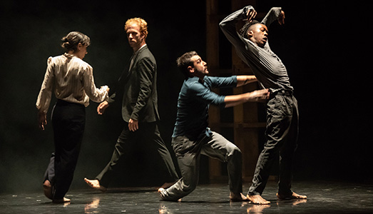 Braccia e mani si librano nell’aria, ispirati alle ipnotiche danze persiane di antica tradizione, che cercano un legame con il presente nel tentativo di definire la propria identità, affermare una libertà di espressione. E si spegne nella semioscurità avanzando verso il pubblico mentre continua a vibrare le braccia. Il titolo Kokoro, della versatile coreografa spagnola Lali Ayguadé, classe 1980, nella lingua giapponese riunisce due parole: mente e cuore. Ricerca d’amore e razionalità compongono questo lavoro di teatro-danza imbastito di stilemi di contemporaneo, hip hop, urban dance, acrobazia circense, amalgamati con intelligenza creativa, per parlarci di trasformazione, di spiritualità, di domande, di paure. Sulla scena ingombra di tre panche da chiesa e di una poltrona di casa – oggetti che muteranno forma e posizione rappresentando un luogo comunitario e uno spazio intimo -, scorre l’esistenza di tre uomini e una donna che intrecciano relazioni di attrazione e repulsione. A caratterizzare la coreografia è la continua trasformazione dei danzatori, il loro mutare movimenti ed espressioni – tra mani “parlanti” al microfono, gesti di officianti, immobilismi e inseguimenti – divenendo altri personaggi, e manifestando stati d’animo variabili. E sono corpi che esprimono forza e fragilità, libertà e dipendenza, ora umanissimi, ora marionette manovrate, ora scimmie da ammaestrare. Il cerchio della vita si chiude sulla struggente canzone Motherless child con l’interprete femminile che lentamente, invecchiandosi, s’incurva.
