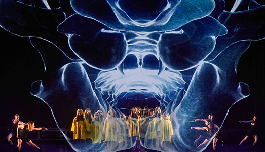 Animati da un afflato etico, sensibili a quanto succede nelle nostre odierne esistenze violentate e usurpate da guerre e terrorismo, a quanto ferisce e uccide le anime e i corpi in terra e in mare, oggi e da sempre, Greco e Sholten con i loro danzatori del Ballet National de Marseille & ICK, si sono immersi nella realtà dell’infanzia spezzata affrontando quei poderosi Kindertotenlieder di Gustav Mahler sulla cui musica, e altre registrate tra cui una melodia morava di Leos Janacek e un canto rivoluzionario di Hanns Heisler, hanno sviluppato una partitura visionaria per sette danzatori, un pianista, voci e presenze di bambini e tecnologia digitale, dal titolo Apparizione (coproduzione del Ravenna Festival, in scena al Teatro Alighieri). Tra diversi assoli vocali e la chiarezza pura dei corali delle giovani voci – il Coro Infantil de La Sociedad Coral de Bilbao –, si evoca un mondo di presenze aliene, quei bambini morti ai quali Friedrich Rückert dedicò le sue struggenti poesie scritte all’indomani della prematura scomparsa di due dei suoi figli. Immersa in paesaggi sonori di natura – sciabordio d’acqua, mare in tempesta, ululati, cinguettii -, tra effetti visivi proiettati su un tulle trasparente che fa da filtro tra la realtà e l’aldilà – in apertura un fondo marino con il volto di una bambina inabissata che guarda in alto, e, in continue dissolvenze, una enorme luna, alberi di un bosco in bianco e nero, poi figure dal rosso sanguigno – la coreografia pulsa di ombre e di luci in un’atmosfera sospesa, notturna, di dolorosa serenità dove l’immagine ingigantita e graficamente scomposta e sezionata di un lupo domina su quelle fragili e forti figure di adolescenti che dubitano dell’esistenza dell’animale in agguato, pur temendolo. Tratta dall’immaginario favolistico infantile il lupo, simbolo di animale selvatico e sociale allo stesso tempo, e spirito della natura, funge da notturno Virgilio nel viaggio in sette tappe di Apparizione con i ragazzi vestiti d’impermeabili gialli, indossando caschi, vagando con torce elettriche, scomparendo dentro bauli illuminati. Dialogano con essi i danzatori dagli abiti variopinti che colorano l’oscurità mentre l’attraversano con i loro movimenti di braccia alzate, piegate in basso, di traverso, roteate e spezzate, tra vibrazioni del petto, scalpitio dei piedi, camminate in relevè. “Non c’è nessuna barriera per chi ha un cuore di bambino”, esclama una voce mentre tre coppie di danzatori aggrappati l’uno all’altro s‘impennano e si rilasciano seguendo l’ondivago movimento che infine vedrà tutti scomparire nell’oscuro mistero della vita.