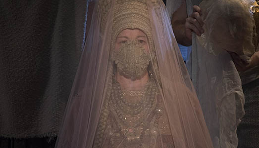 M.M.: «La mia preparazione non è diversa da quella degli altri attori in scena. Abitare lo spazio e abitare il tempo della scena fino a farlo pulsare richiede un enorme lavoro di concentrazione e di ascolto che passa attraverso la conoscenza reciproca data dal molto tempo passato insieme. Le presenze in scena sono sempre in profonda relazione tra loro, in un rapporto che rende ogni gesto necessario: l’attore non fa appello alla memoria, ma si basa sulle reti di senso e sulle strutture relazionali che devono essere vissute ogni volta in modo autentico. Non ci possiamo permettere di “rifare” lo spettacolo, dobbiamo “ricrearlo”. È il meccanismo più difficile, perché è composto di piccole attenzioni e grande concentrazione. La disciplina riguarda tutti gli aspetti della messinscena: il corpo, il testo, la voce, il canto… Lo stesso discorso vale per un monologo, per una scena di silenzio o per un’agitazione fisica collettiva, non c’è differenza».