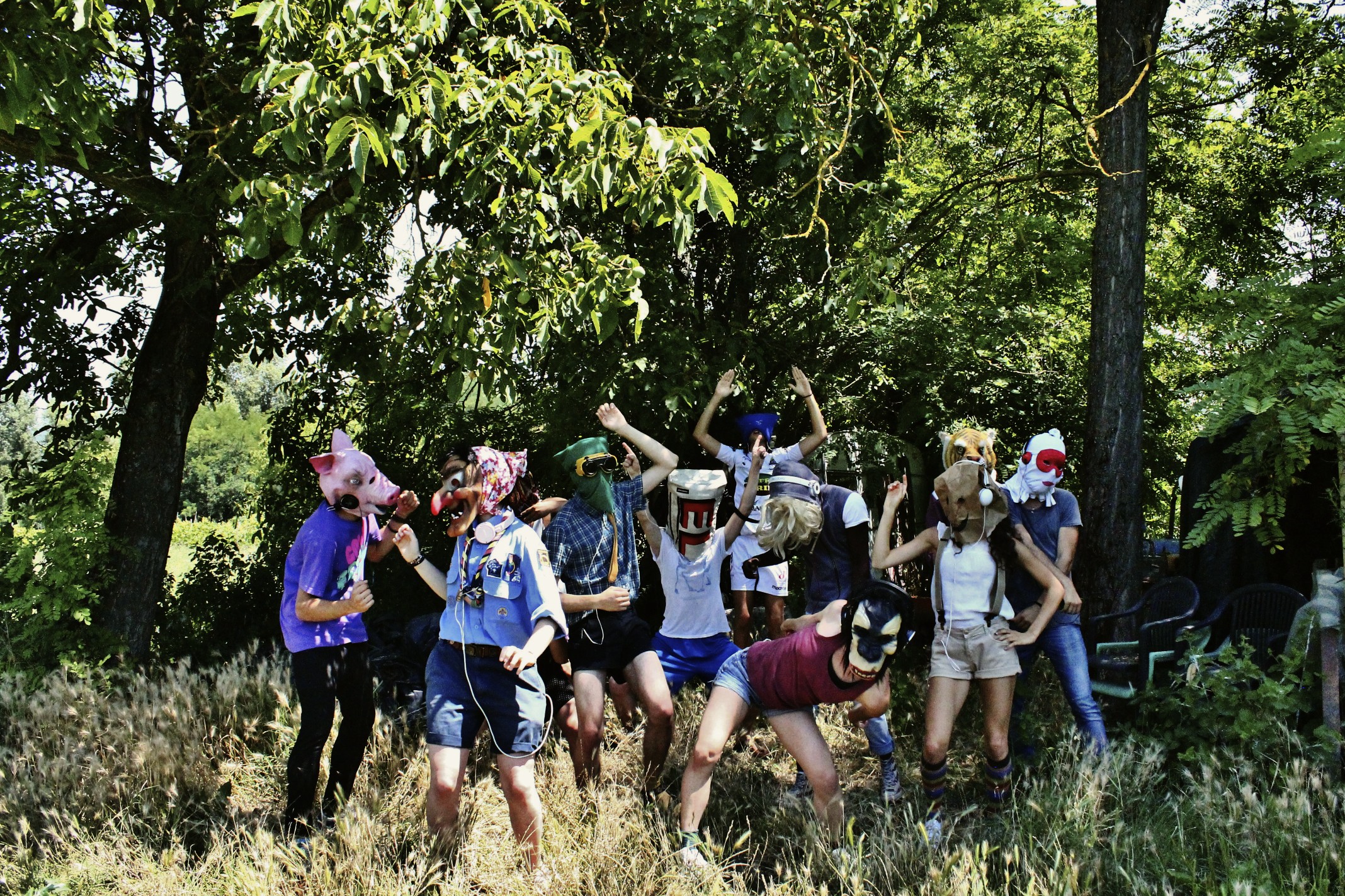 «La volontà di andare a prendere riferimenti culturali ed estetici di altre culture o riferimenti arcaici rispetto alla nostra era già parte del percorso a tavolino. L’idea di contaminazione spesso è invece una conseguenza della diversità dell’apporto di ciascuno dei membri della compagnia e dona per forza prospettive impreviste. Spesso abbiamo fatto progetti completamente nuovi, come lavori circensi, teatro ragazzi, con gli anziani, piuttosto che giochi di società. I contesti nuovi impongono un’apertura apparentemente estranea e il richiamo ad altre figure artistiche».