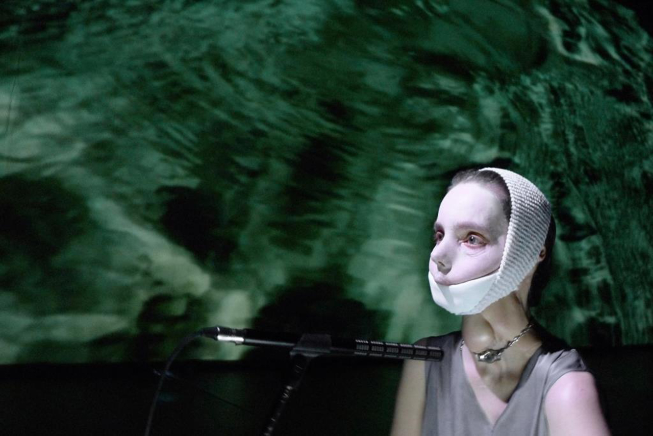 È una nuova epifania del sentimento tragico, un nuovo atto segnico di Maria Federica Maestri e Francesco Pititto, un loro ulteriore affondo stratificato e poetico, di pulsante rifrazione fisica e visiva, che ha trovato forma e concetto nella condizione biografica della performer Monica Barone, un corpo danzante e sonoro di intima restituzione; e tratto ispirazione dalla materia estetica di un’opera di Beyus – “Titus-Iphigenie” -, dalla musica di Gluck – “Iphigénie en Tauride” -, e dal dramma di Goethe “Iphigenie auf Tauris” -: una quadruplice tessitura per questa “Iphigenia in Tauride. Io sono muta” di Lenz Fondazione. Muta perché la protagonista porta il segno di una trasformazione facciale e alla gola comunicando con la respirazione di una cannula. La userà visibilmente amplificandone il fiato vicino ad un microfono nella potente sequenza in cui davanti ad una teca d’acqua immergerà le mani, le laverà, spargerà le gocce in un rituale di purificazione. Siamo nel tema del sacrificio, parola che significa letteralmente “rendere sacro”. E lo è, nella tragedia di Euripide, il gesto di Ifigenia, sacrificata dal padre Agamennone ritrovandosi a morire come una schiava, trascinata di fronte all’esercito greco che aspetta di poter salpare. Ma la fanciulla che tutti credevano sacrificata agli dei viene ritrovata dopo la guerra di Troia nella barbara Tauride nei panni di sanguinaria custode del simulacro di Artemide, a ridare speranza a uno sfiduciato Oreste, liberato dalla maledizione delle Erinni per il parricidio proprio grazie a questa salvifica impresa.