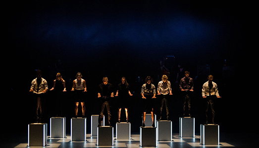 I GY!BE non concedono mai interviste, un dettaglio che si ripete nel modo di conquistare il palco, dove spesso, non c’è spazio per la presenza scenica. Quello che è accaduto nel doppio appuntamento romano, è uno spettacolo messo in scena la prima volta nel 2005 sulle note di F#A#?, il loro primo album che dopo 10 anni viene riallestito da The Holy Body Tattoo con musiche, in parte inedite, eseguite dal vivo. In Monumental danzatori e musicisti hanno il ruolo di comprimari, dove i primi tentano di creare dei tableaux vivant dell’ansia tipica della cultura urbana, resa con i movimenti iperaccelerati; ma in questo caso, nell’acustica perfetta dell’Auditorium Conciliazione, è il ritmo della drum machine e delle percussioni a dettare tempi e movimenti, scegliendo se sottolinearli o tacerli. Così la melodia post rock non diventa sfondo e il gruppo canadese è talmente conscio di questo dettaglio da far quasi scomparire la sua presenza, se non fosse che il richiamo delle cinque chitarre e del violino ricorda di un patto serrato che vige per i circa 60 minuti di spettacolo.