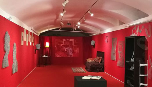 Un divano coperto di tappeti persiani, che in realtà è un lettino, e uno scrittoio con alcune piccole sculture: ecco la riproduzione dello studio di Sigmund Freud proposta dalla pronipote Jane McAdam Freud. Ma appena si entra nella galleria C|E contemporary di Porta Romana a Milano non colpiscono solo il lettino e lo scrittoio, che accompagnano l’immaginario della psicanalisi nell’ultimo secolo, e neanche la staticità di un video bloccato su un’immagine, o gli autoritratti in filo di ferro appesi ai muri. A catturare sono il rosso delle pareti e del pavimento: lo studio di Freud e stato riproposto all’interno di un grande utero materno, generatore del conturbante dell’artista.
