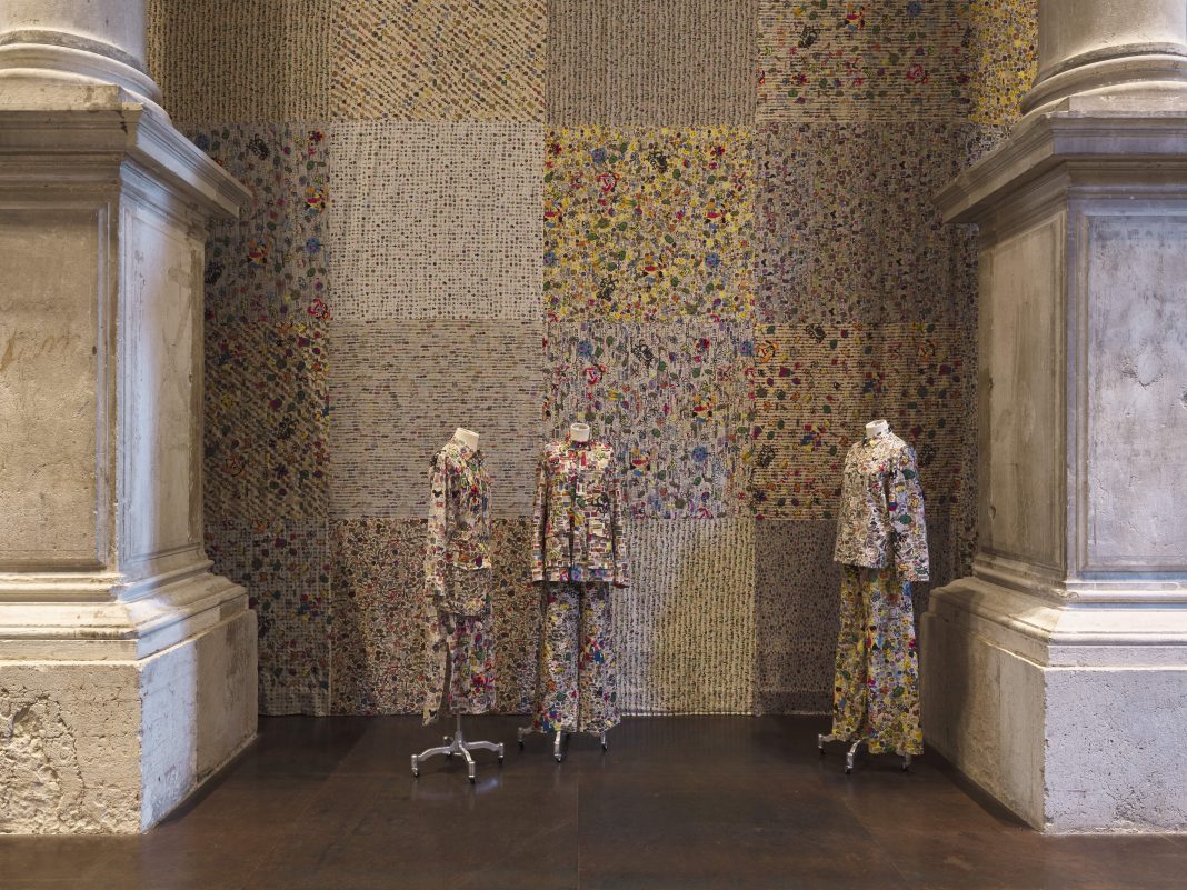 100 sculture in passerella: “A Storm Is Blowing From Paradise”, la mostra personale di Oscar Murillo alla Scuola Grande della Misericordia di Venezia (qui la nostra recensione) chiude con una performance che mette in dialogo arte e moda, con uno sguardo alla creatività emergente dal territorio. Concepite da Murillo per il progetto Arepas y Tamales, le sculture indossabili saranno infatti accompagnate nello show da una serie di creazioni commissionate agli studenti delle scuole di moda veneziane e non solo. E a completare il programma della giornata di chiusura, anche performance, sound art, musica dal vivo e un DJ set a cura di Manuka Honey, oltre a una nuova installazione dell’artisa di origini colombiane e co-vincitore dell’edizione 2019 del Turner Prize.